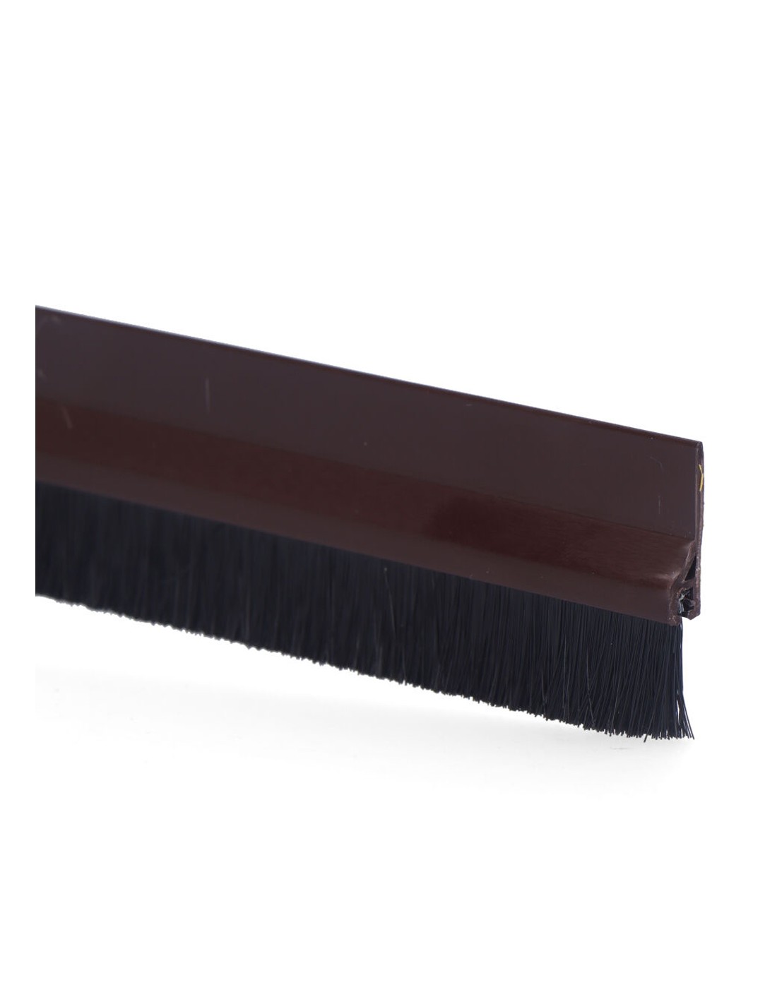 Burlete bajo puerta pvc rigido marrón 1 m con el cepillo de fibra y el perfil de acero - para insertar en la puerta