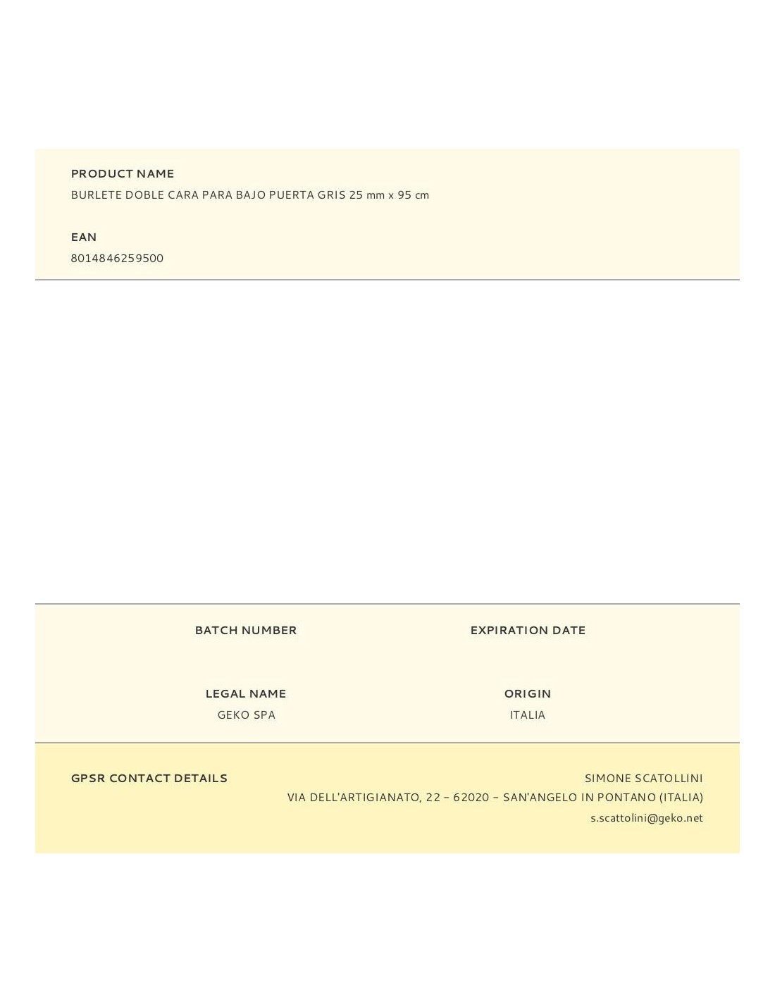 Burlete doble cara para bajo puerta gris 25 mm x 95 cm