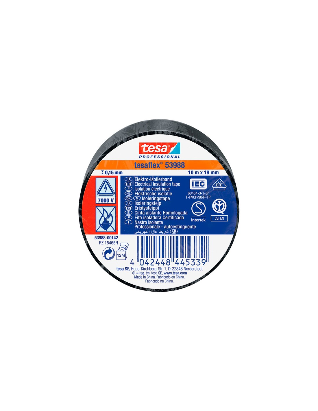 Cinta aislante homologada negra 19 mm x 10 m