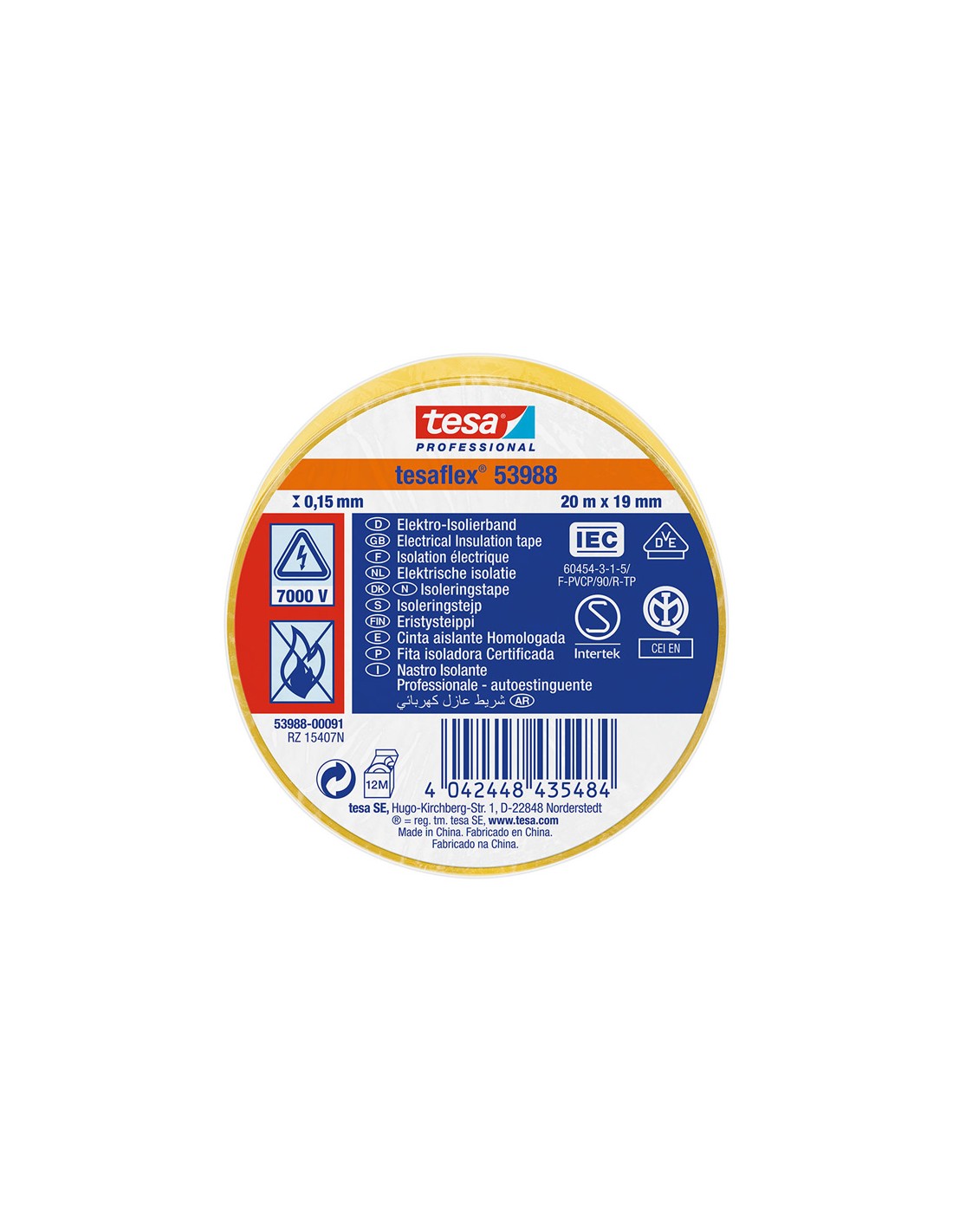 Cinta aislante homologada amarilla 19 mm x 20 m