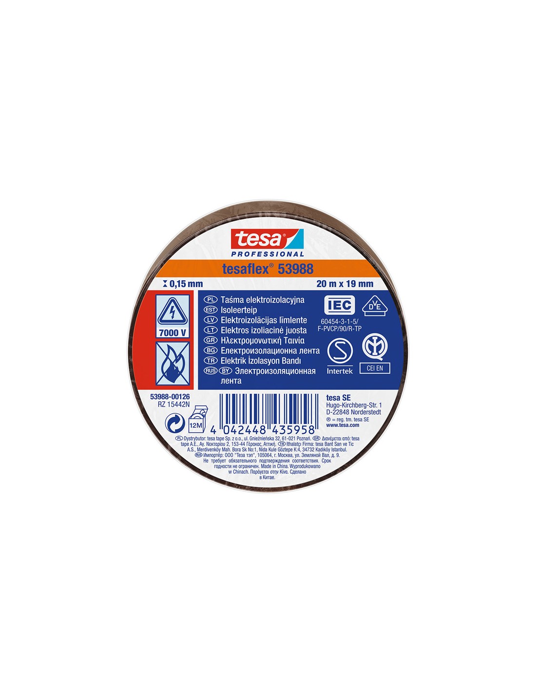 Cinta aislante homologada marrón 19 mm x 20 m
