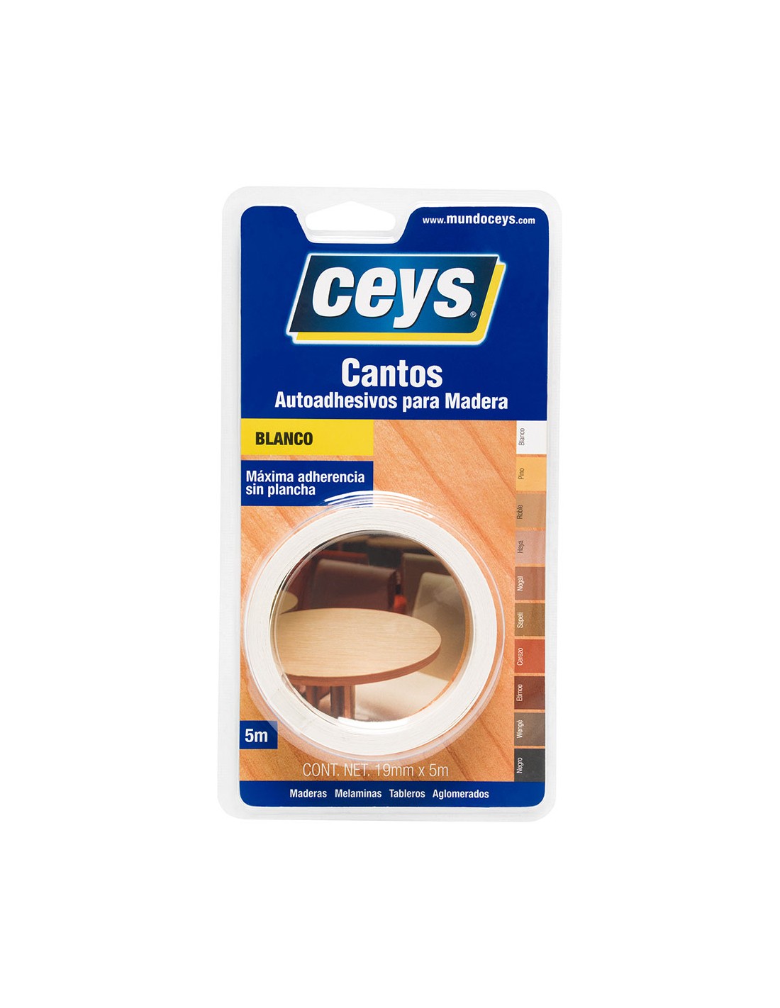 Canto autoadhesivo blanco para madera. aplicable en todo tipo de tableros, aglomerados, melaninas y maderas en general. 19 mm x 5 m