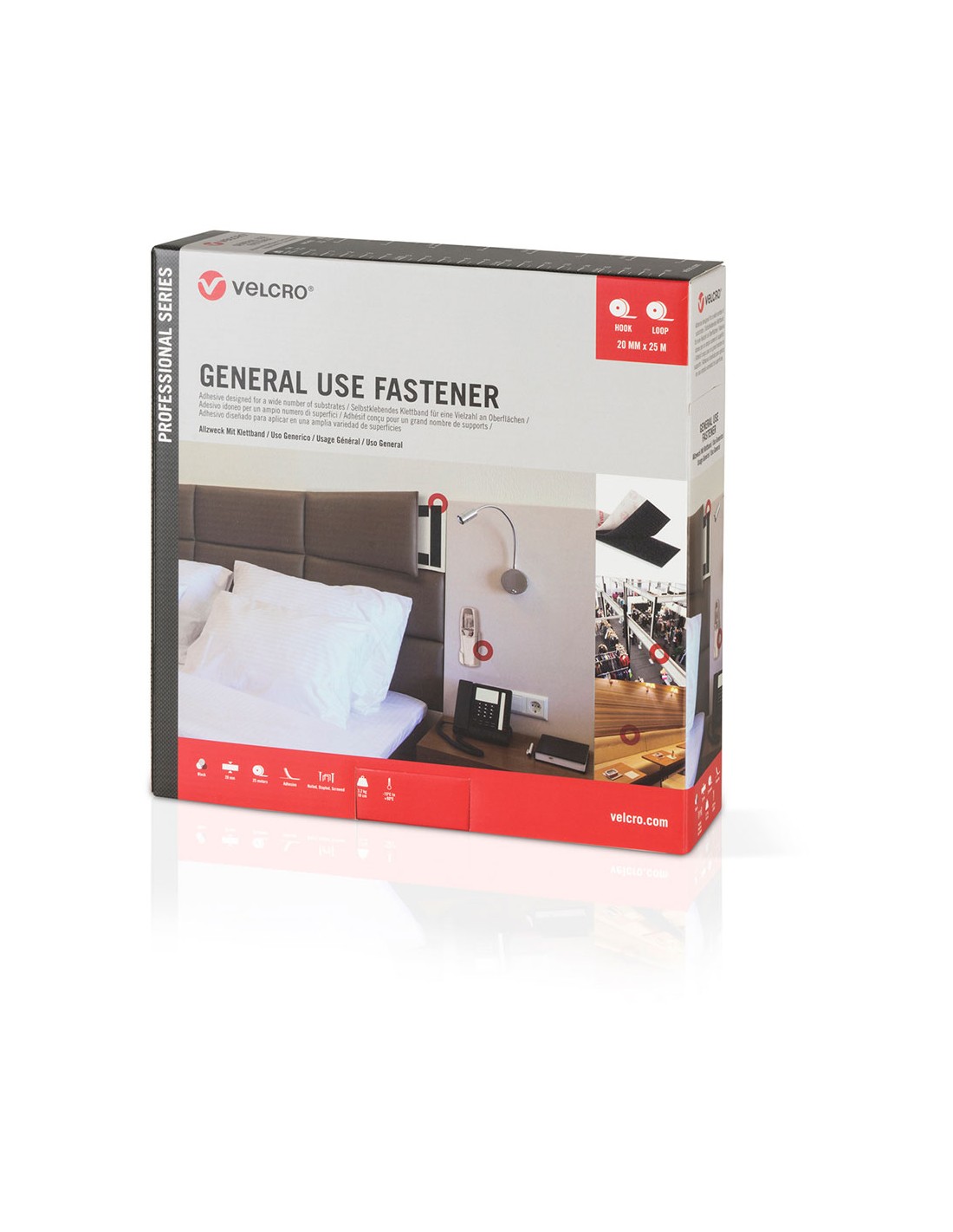 Cinta de cierre adhesiva de gancho y bucle, color negro, 20 mm x 25 m, para su uso general