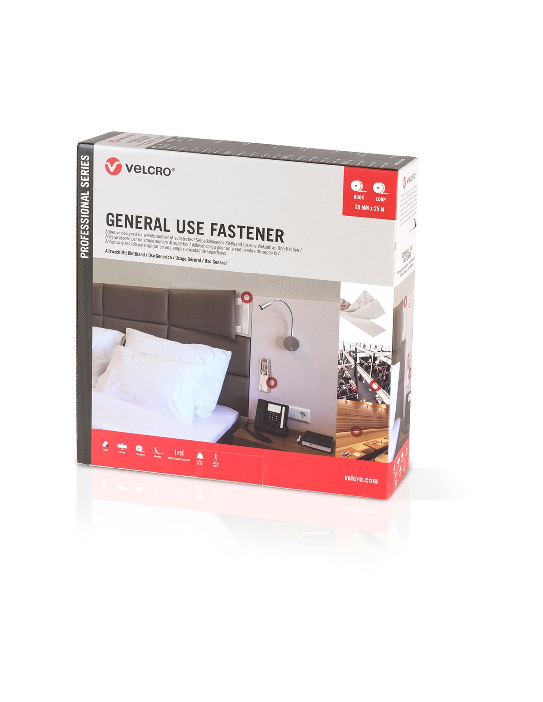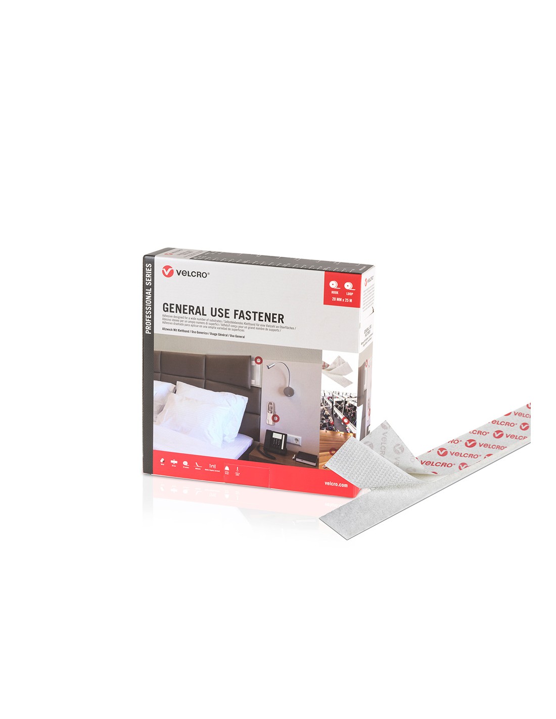Cinta de cierre adhesiva de gancho y bucle, color blanco, 20 mm x 25 m, para su uso general
