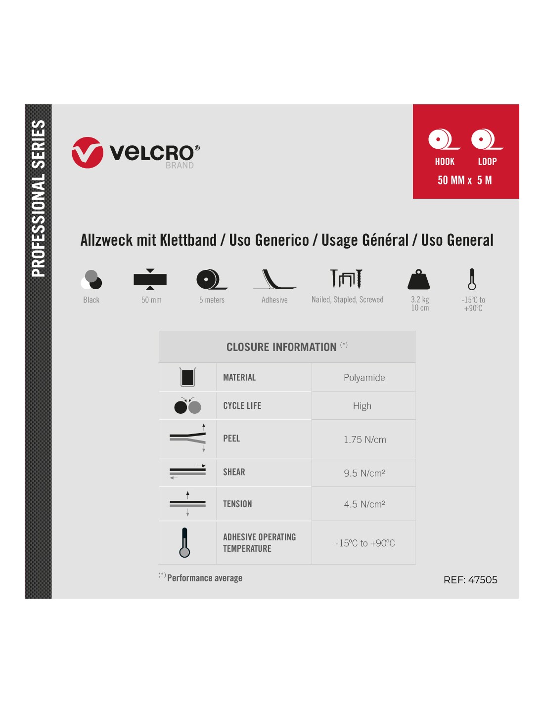 CINTA ADH 50 100MM NE MARCA VELCRO®