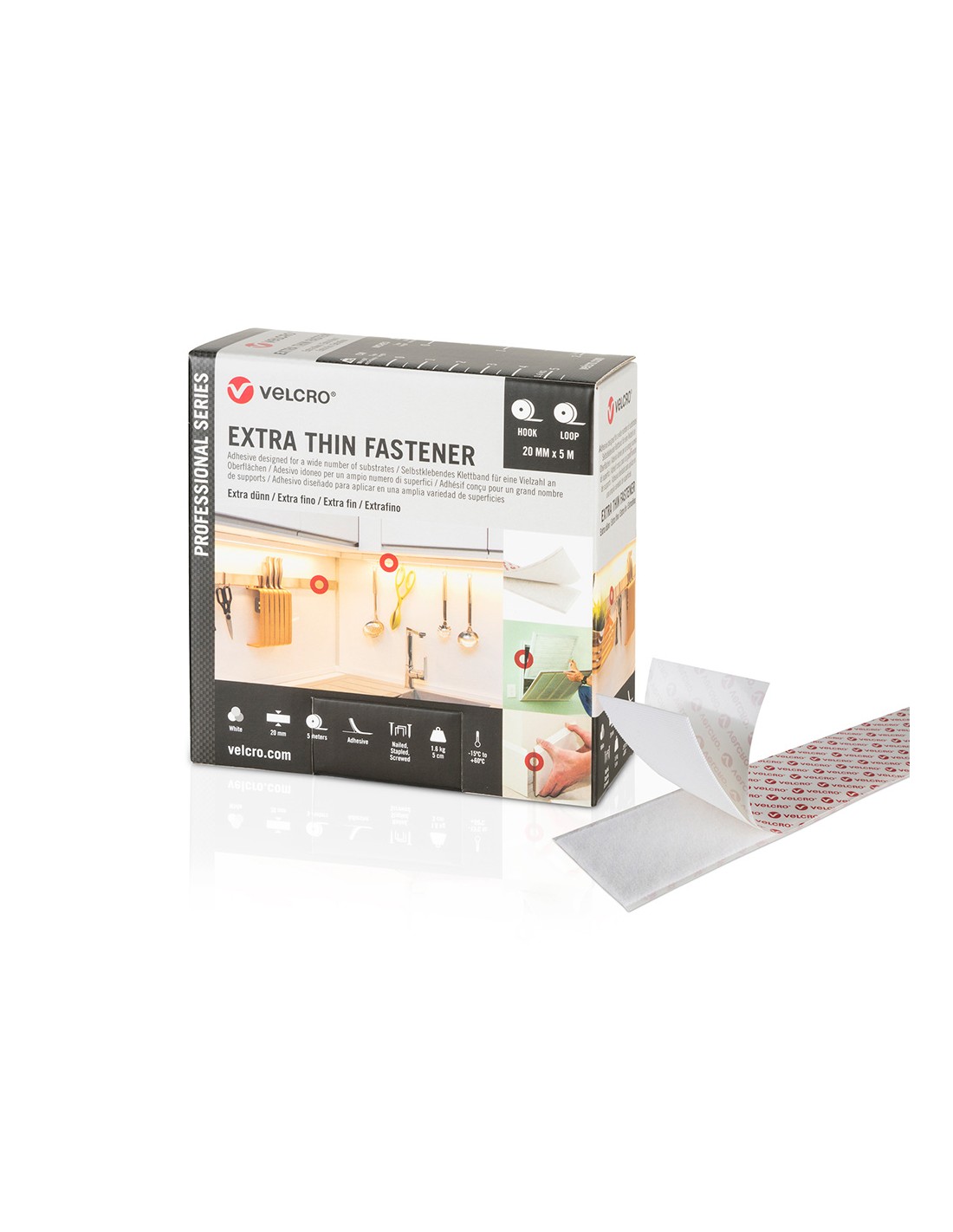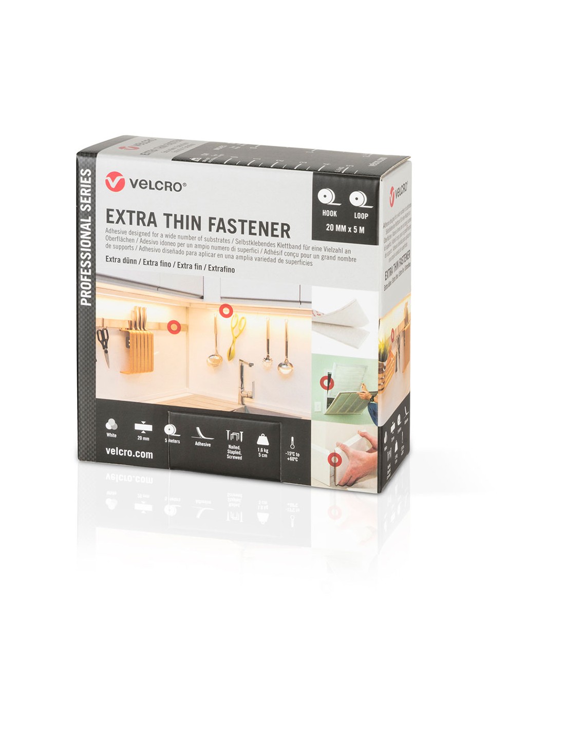Cinta adhesiva extrafina blanca 20 mm x 5 m, para sujeciones con mínimo grosor