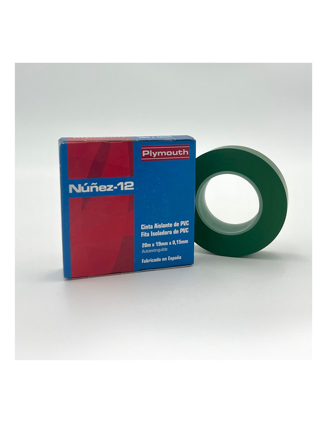 Cinta aislante eléctrica profesional pvc verde alta adhesión 19 mm x 0,15 mm x 20 m