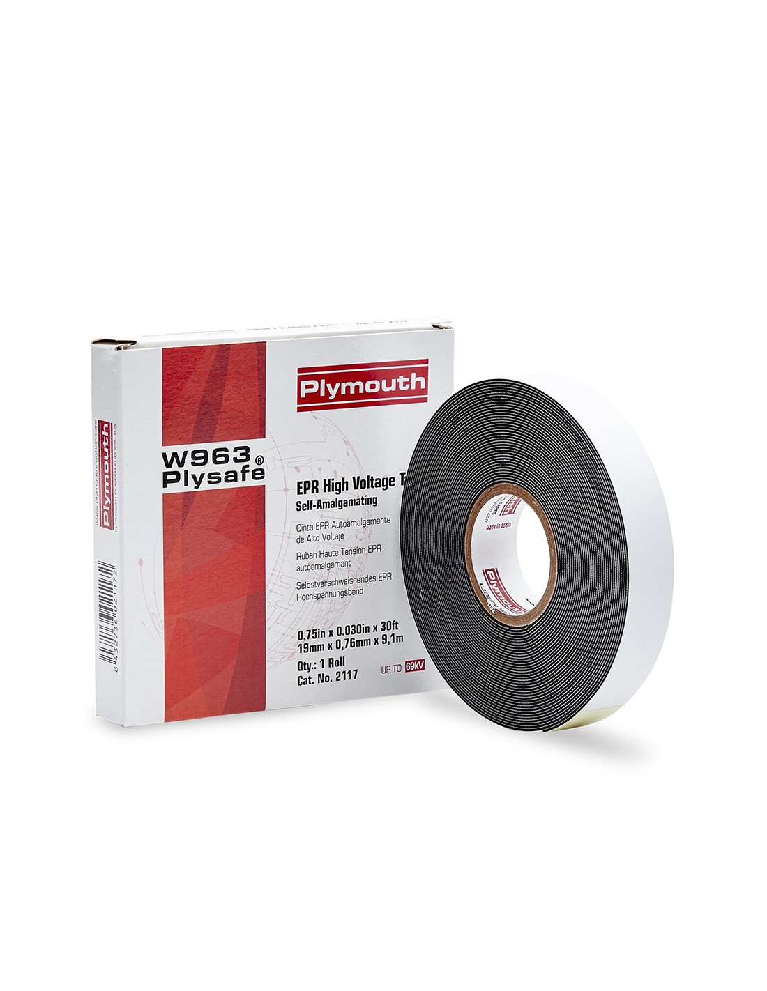Cinta aislante caucho epr autosoldable vulcanizable alto voltaje hasta 69kv negro 19 mm x 0,76 mm x 9,1 m