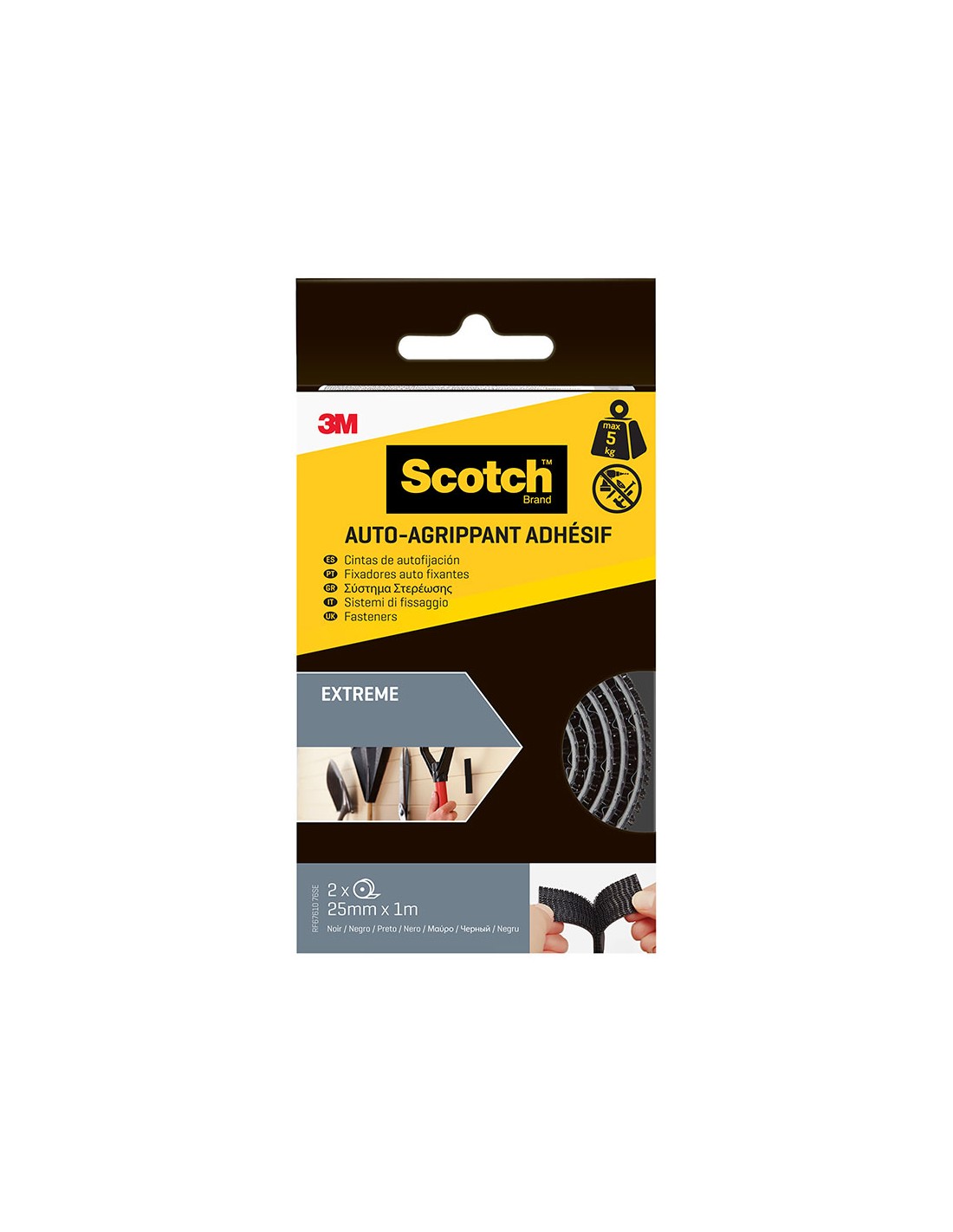 Cinta de autofijación negra, 25mmx1m, 2 uds, cierres reposicionables, máx 5 kg