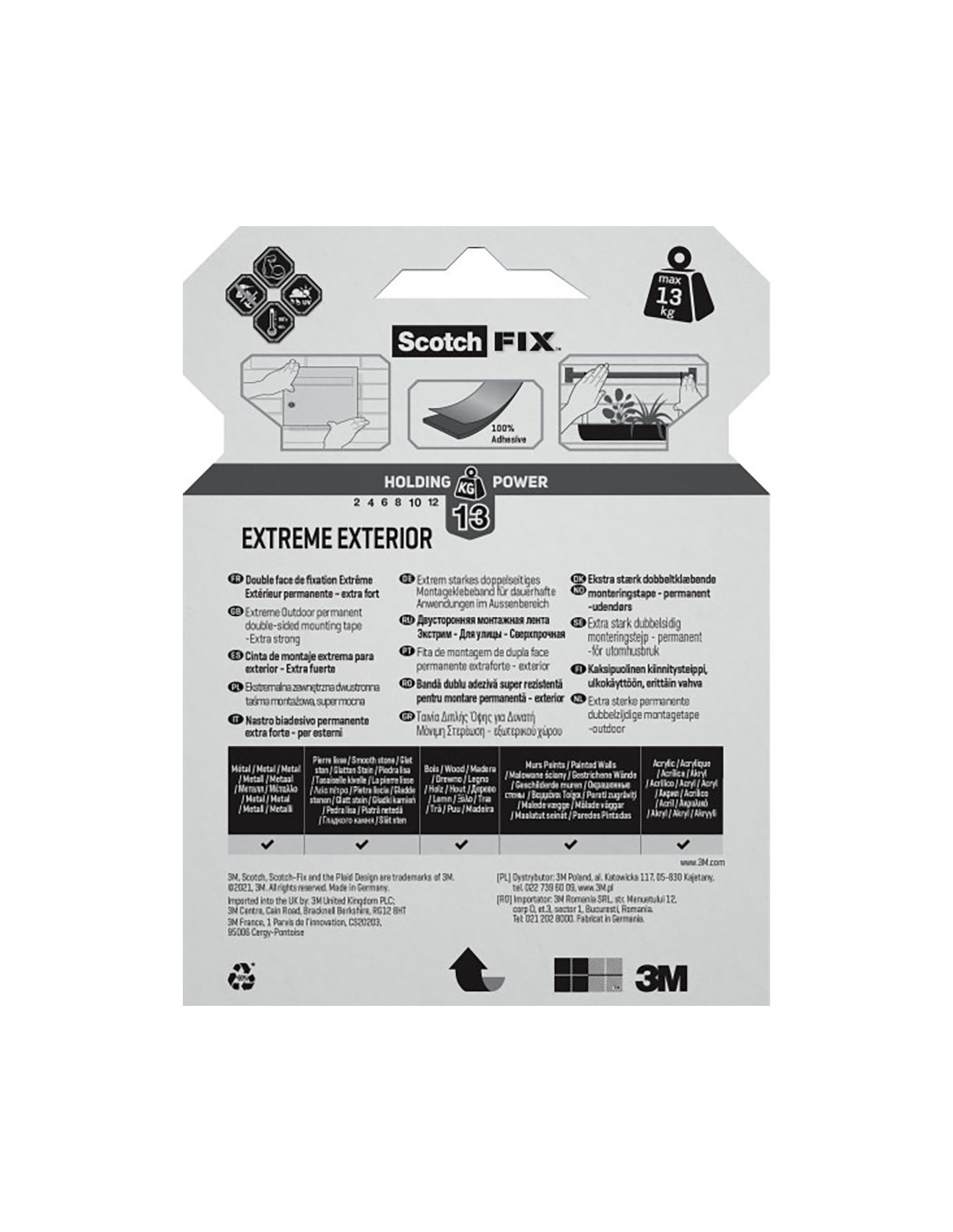 Cinta doble cara de montaje para exteriores extreme, máx 10 kg 19mmx1,5m