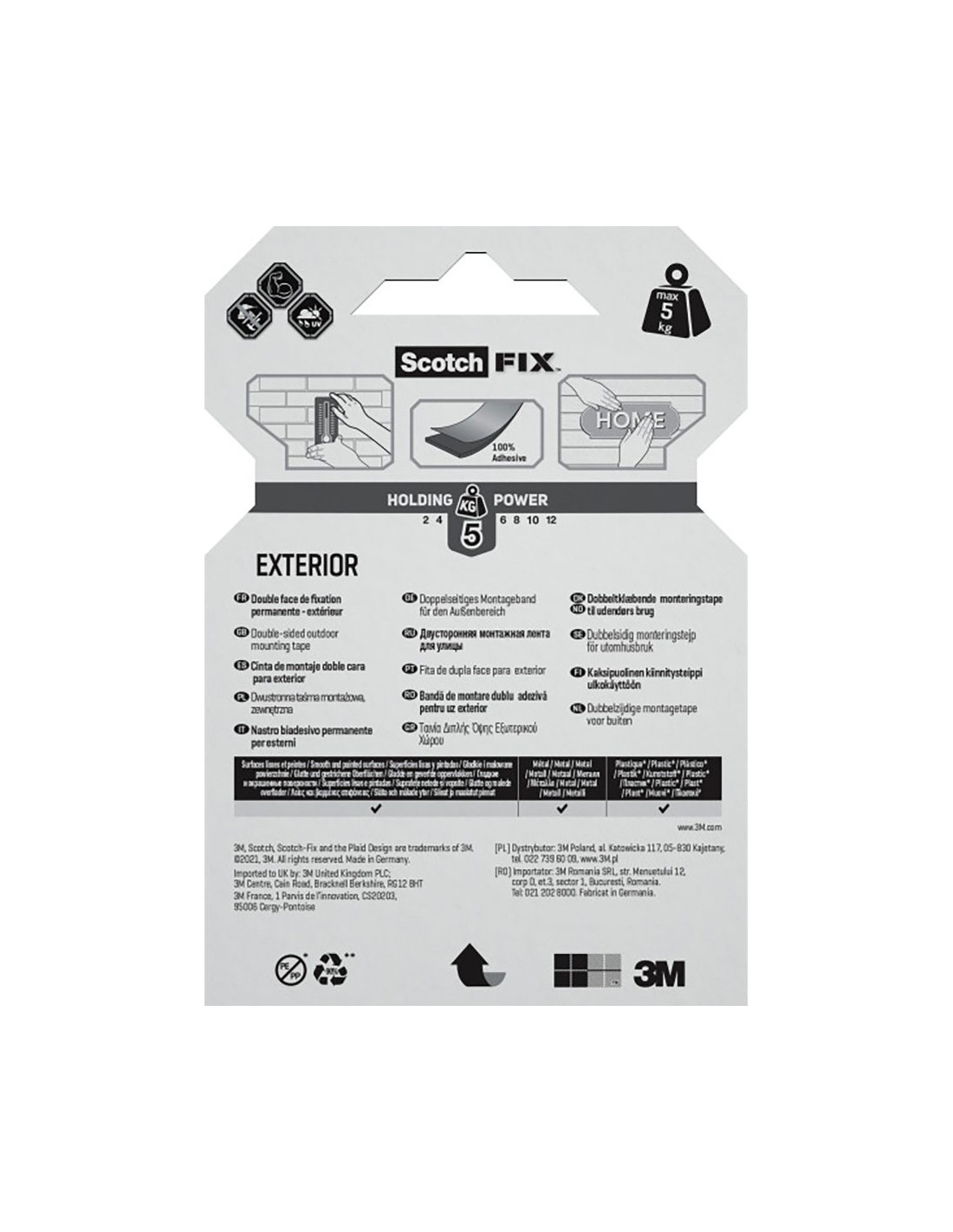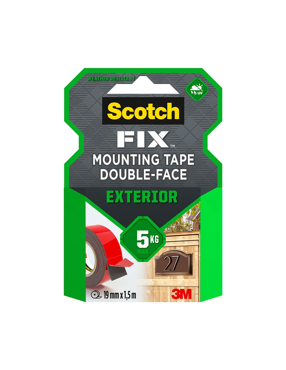 Cinta doble cara de montaje, exterior, máx 5 kg, 19 mm x 1,5 m