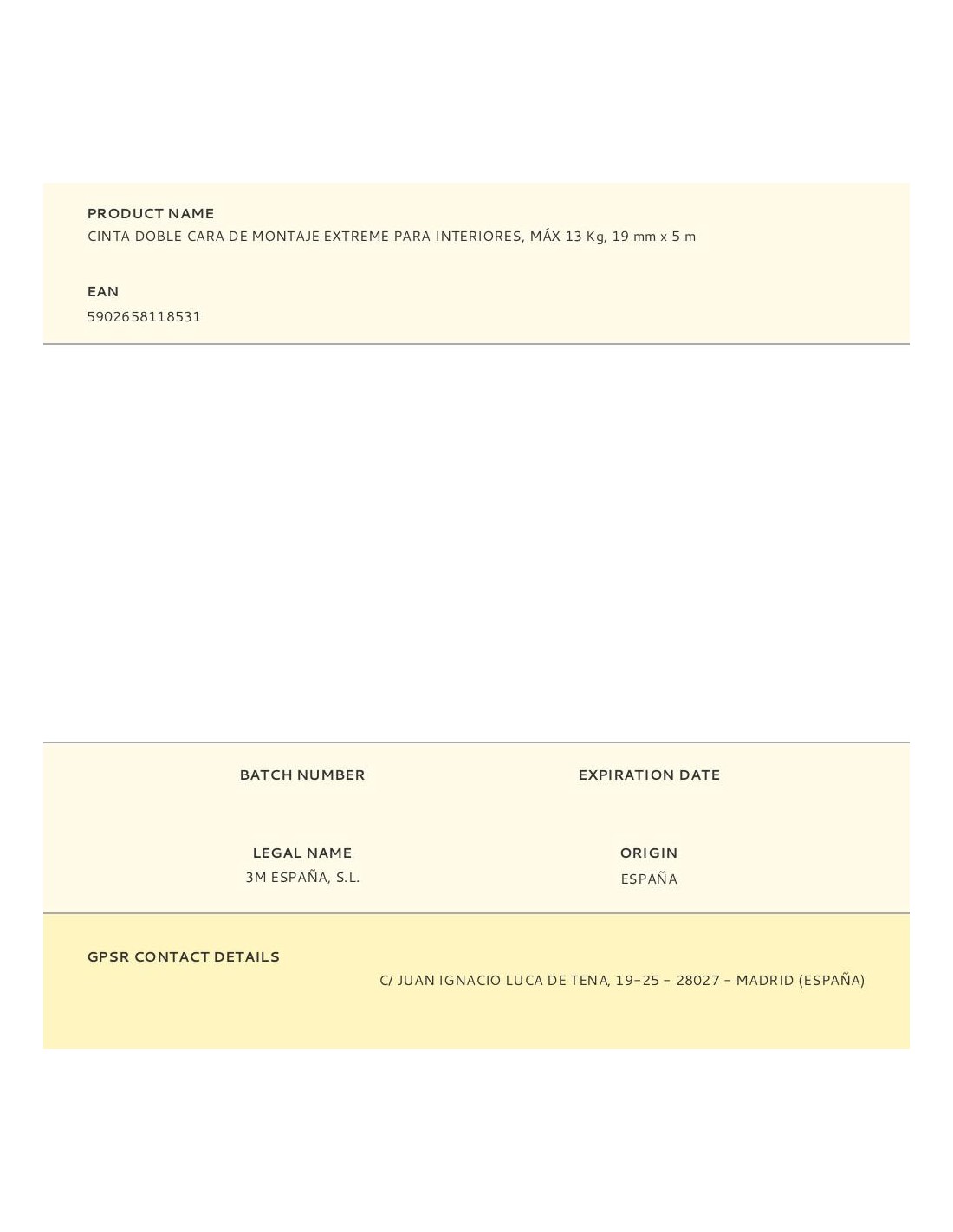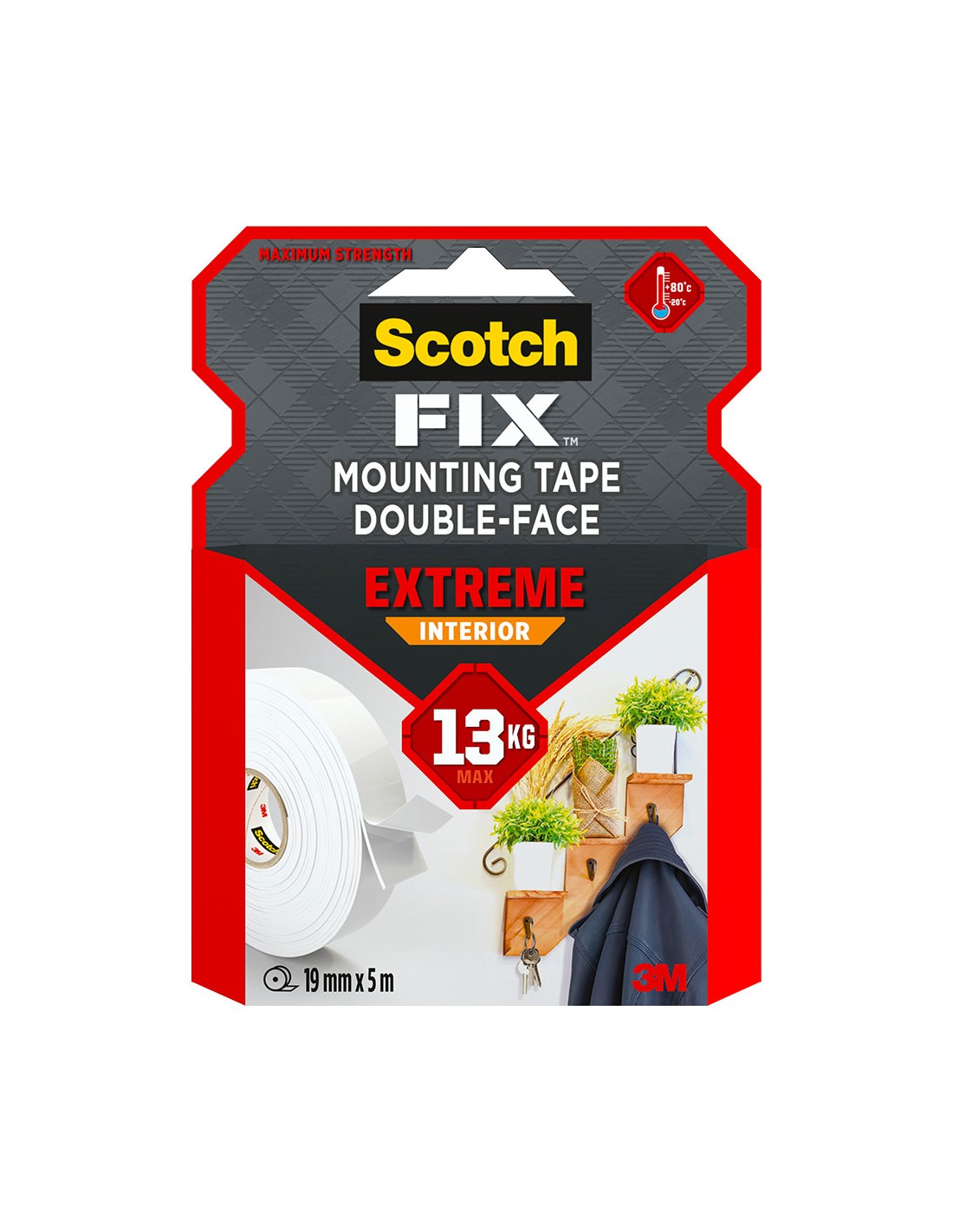 Cinta doble cara de montaje para interiores extreme, máx 13 kg, 19mmx5m