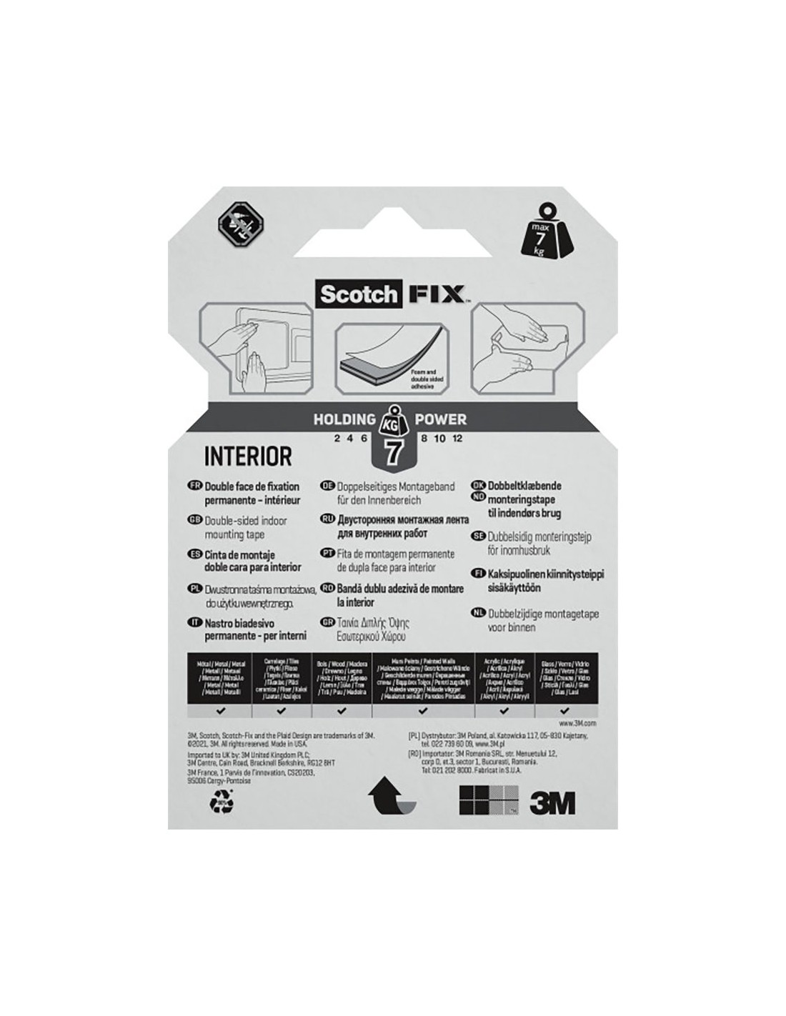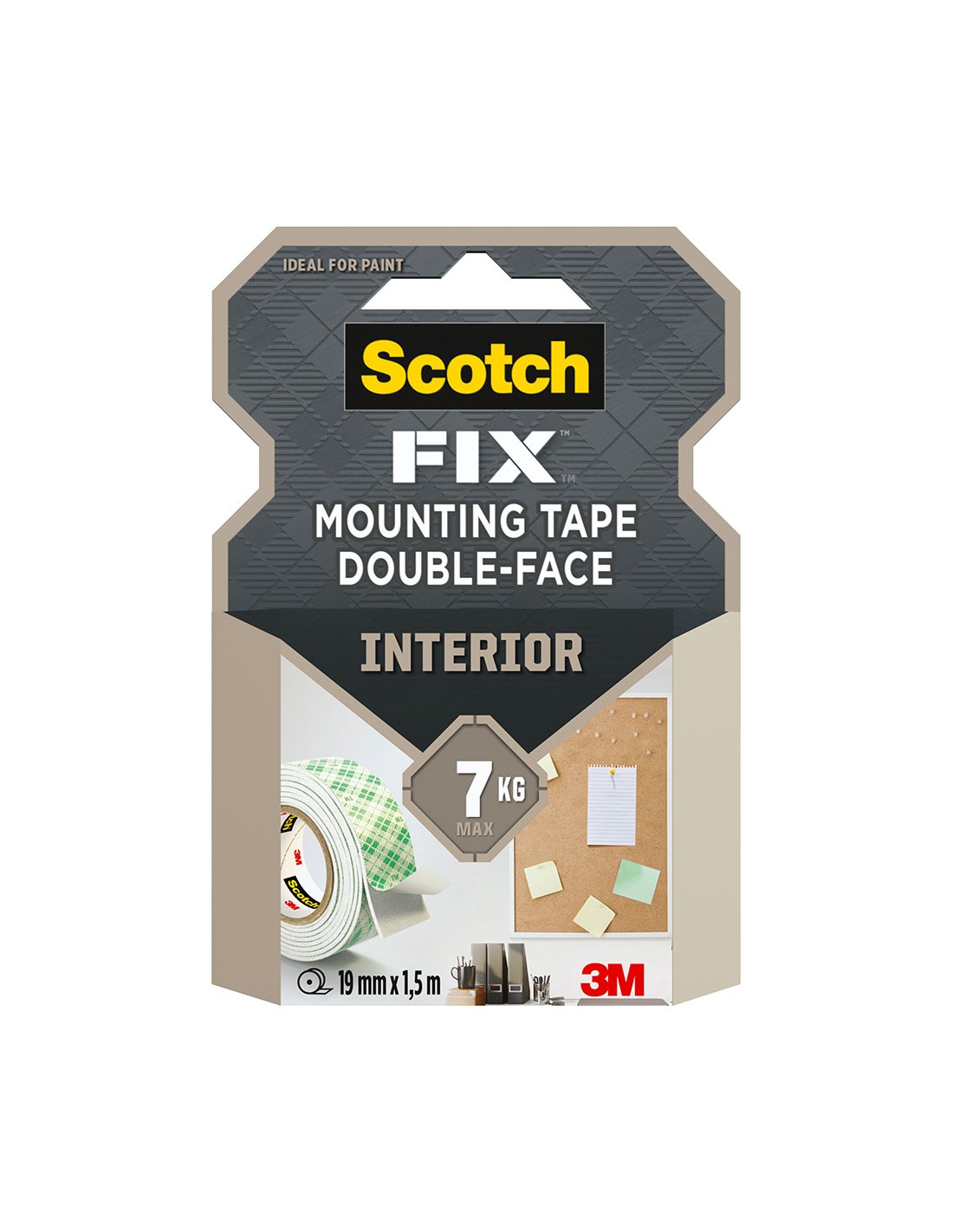 Cinta doble cara de montaje para interiores, máx 7 kg, 19mmx1,5m