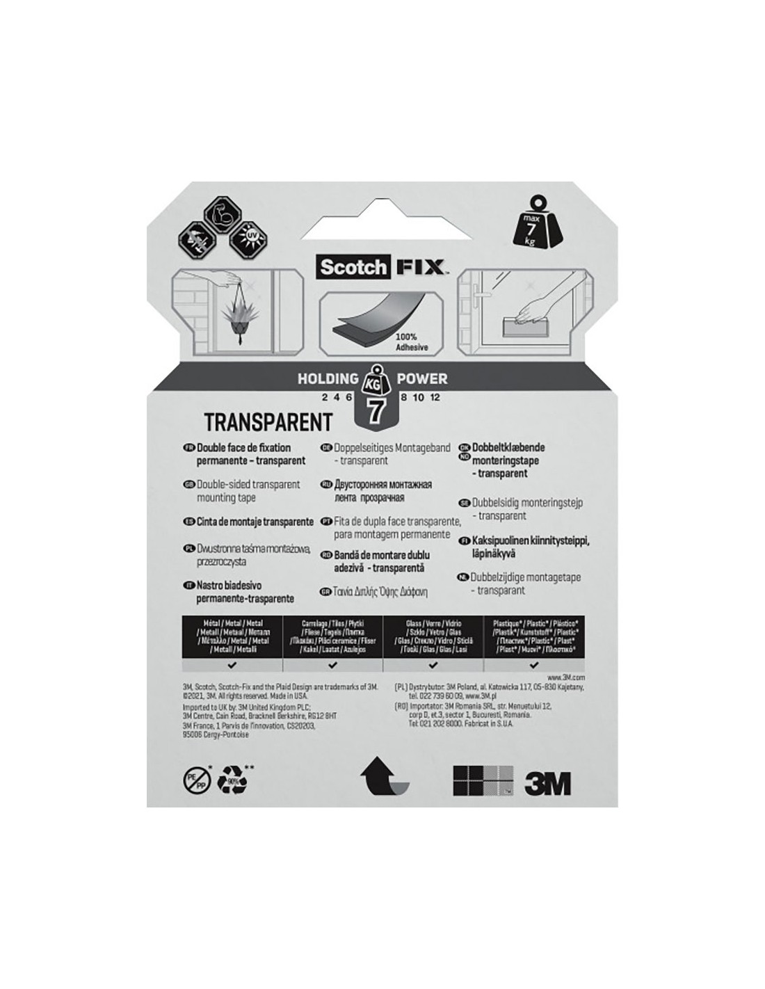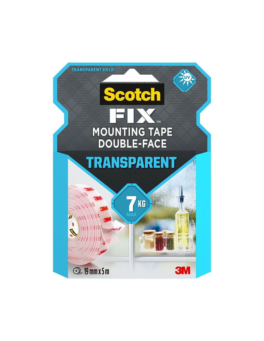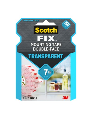 Cinta doble cara de montaje, transparente, máx 7 kg, 19mmx5m