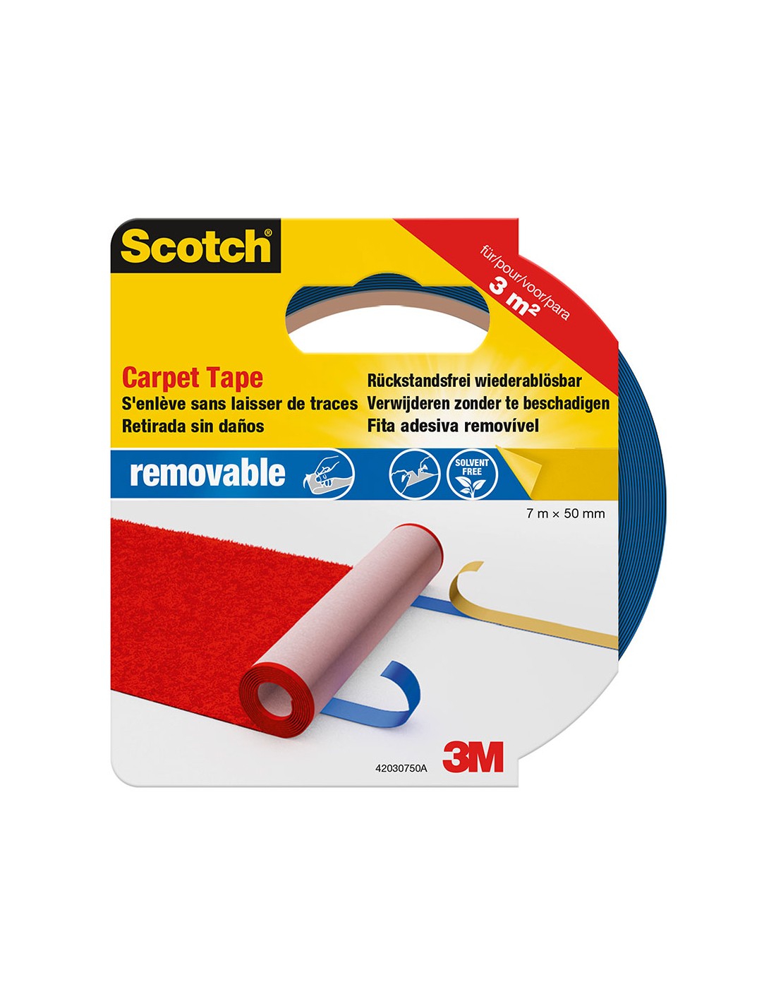 Cinta doble cara removible para alfombras 50 mm x 7 m