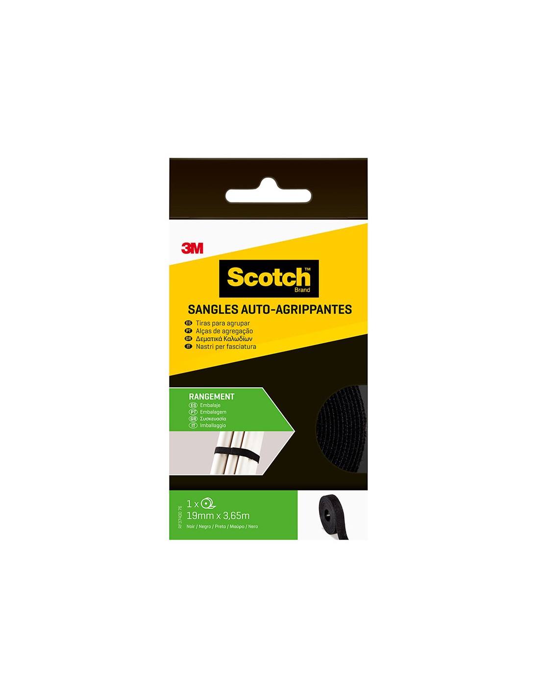 Tira para agrupar a medida negro 19 mm x 3,65 m