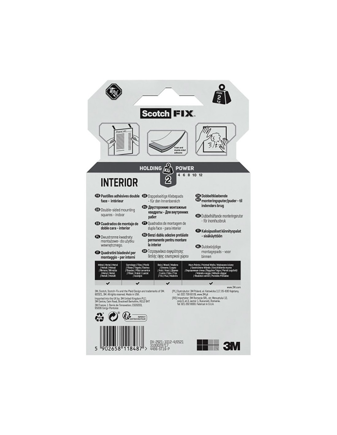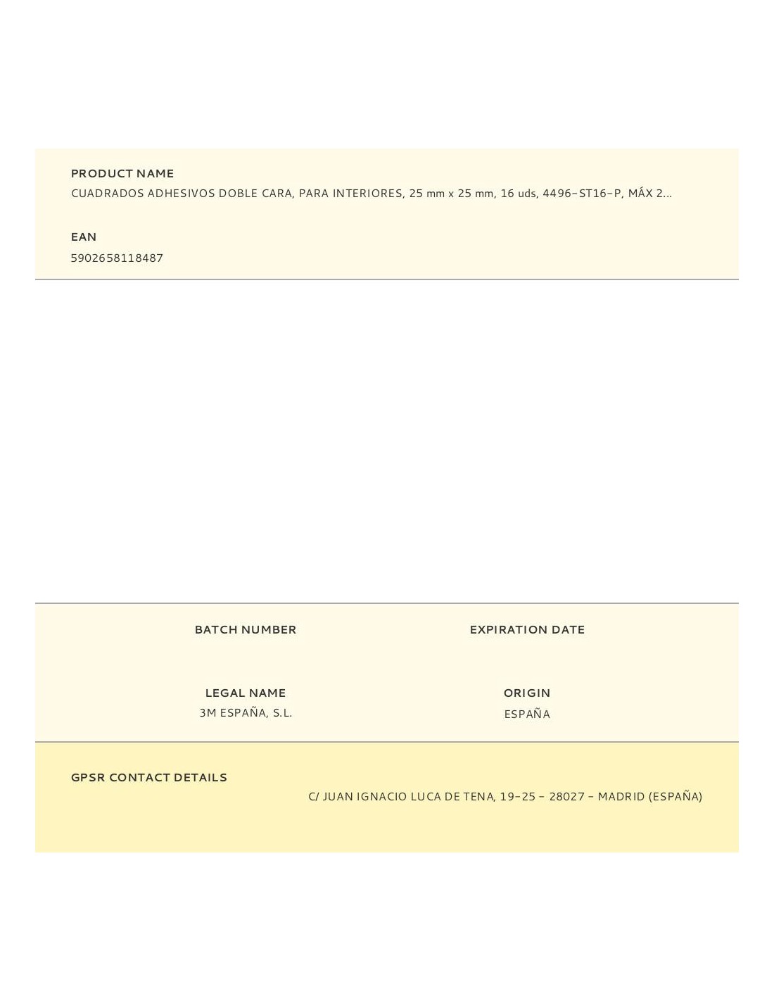 Cuadrados adhesivos doble cara, para interiores, 25mmx25mm, 16 uds, 4496-st16-p, carga máxima 2 kg