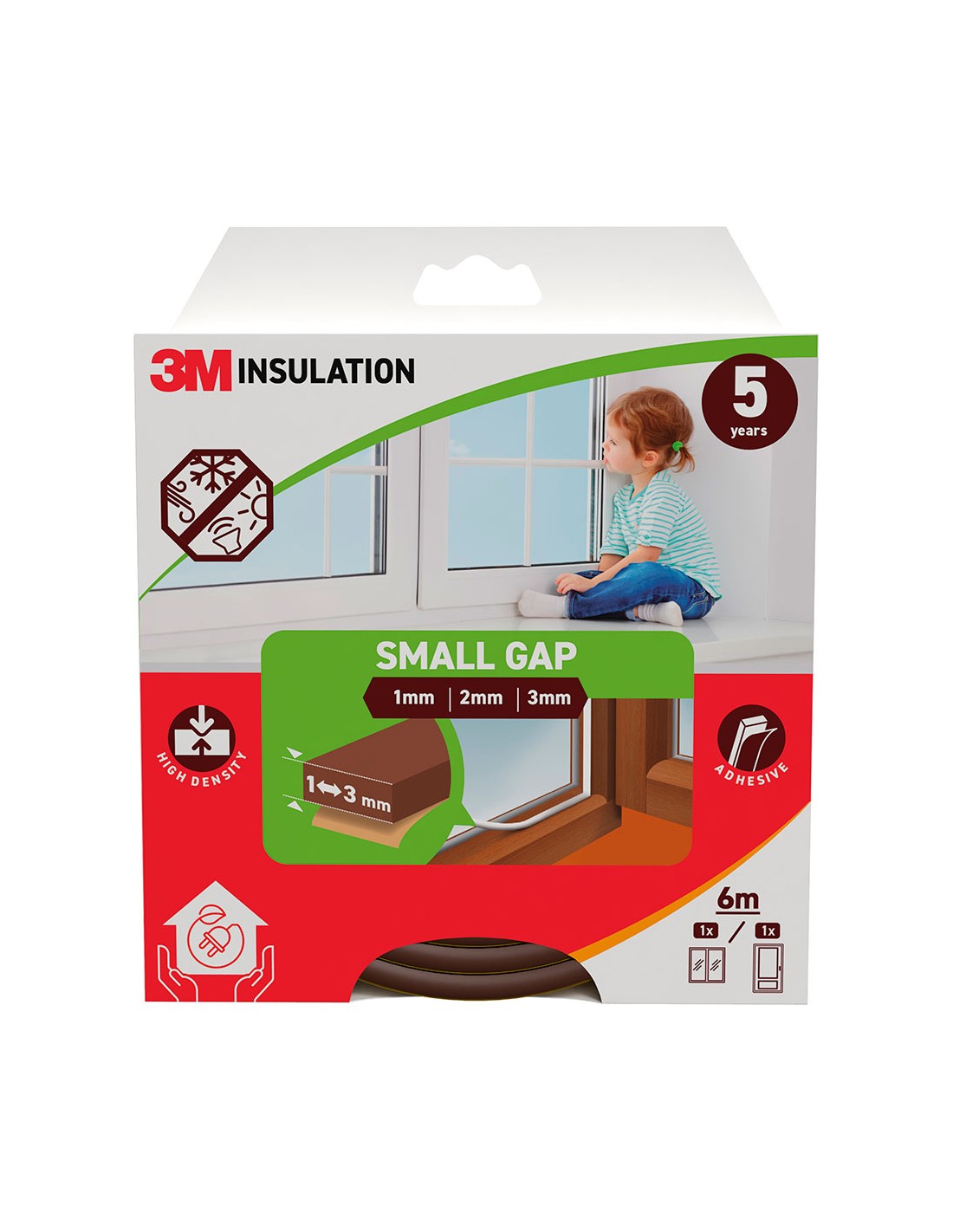 Burlete de aislamiento clásico para huecos pequeños de 1 - 3 mm, burlete de espuma de alta densidad diseñado para todo tipo de ventanas y puertas fácil de instalar y para que dure años, garantizando un mejor aislamiento marrón 6 m
