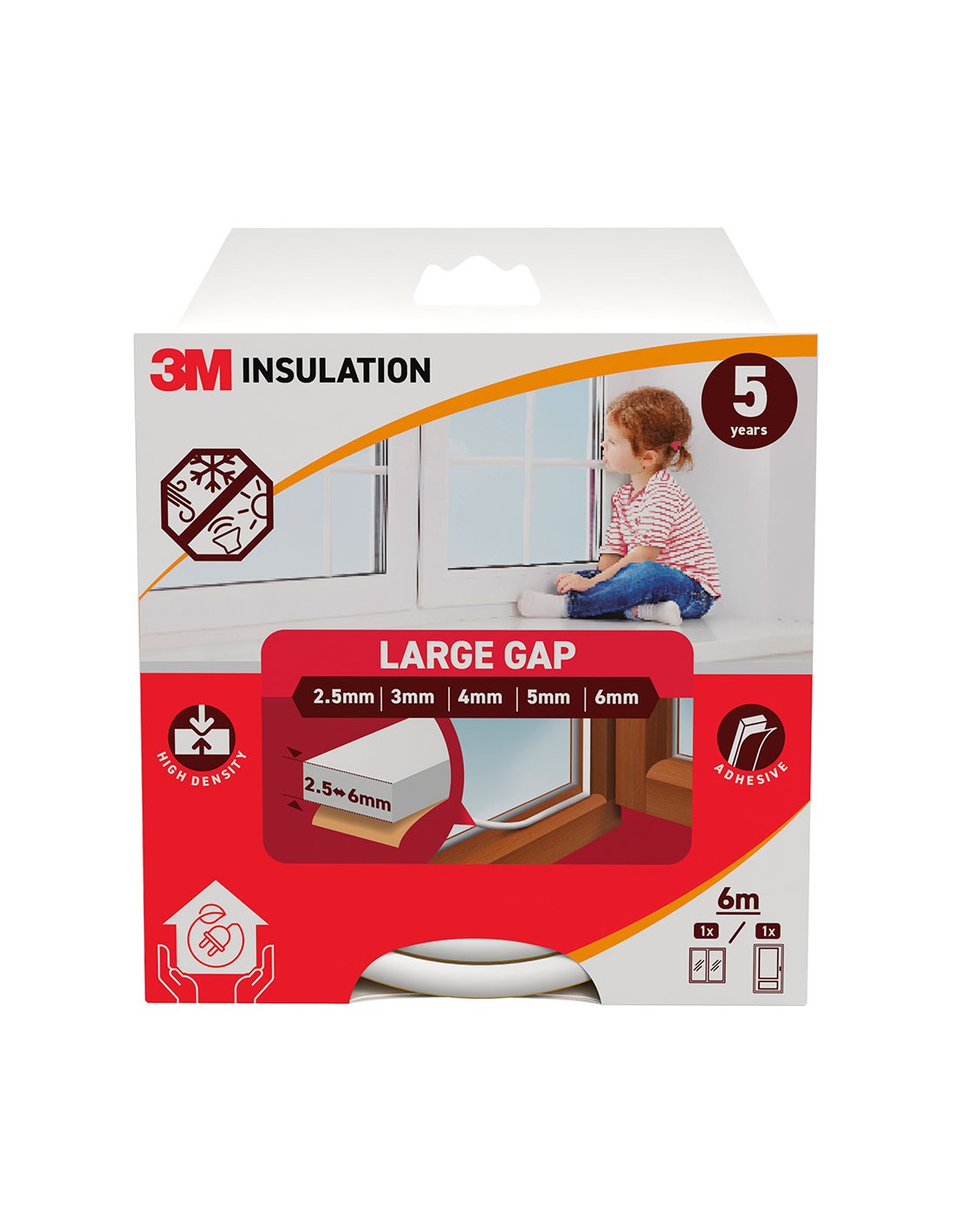 Burlete de aislamiento clásico para huecos grandes de 2,5 - 6 mm, burlete de espuma de alta densidad diseñado para todo tipo de ventanas y puertas fácil de instalar y para que duren años, garantizando un mejor aislamiento blanco 6 m
