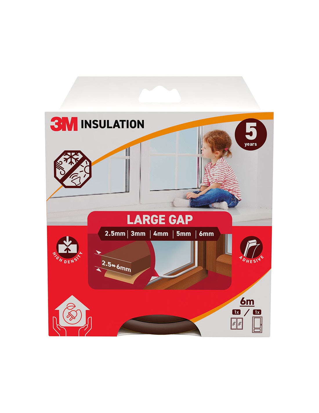Burlete de aislamiento clásico para huecos grandes de 2,5 - 6 mm, burlete de espuma de alta densidad diseñado para todo tipo de ventanas y puertas fácil de instalar y para que dure años, garantizando un mejor aislamiento marrón 6 m