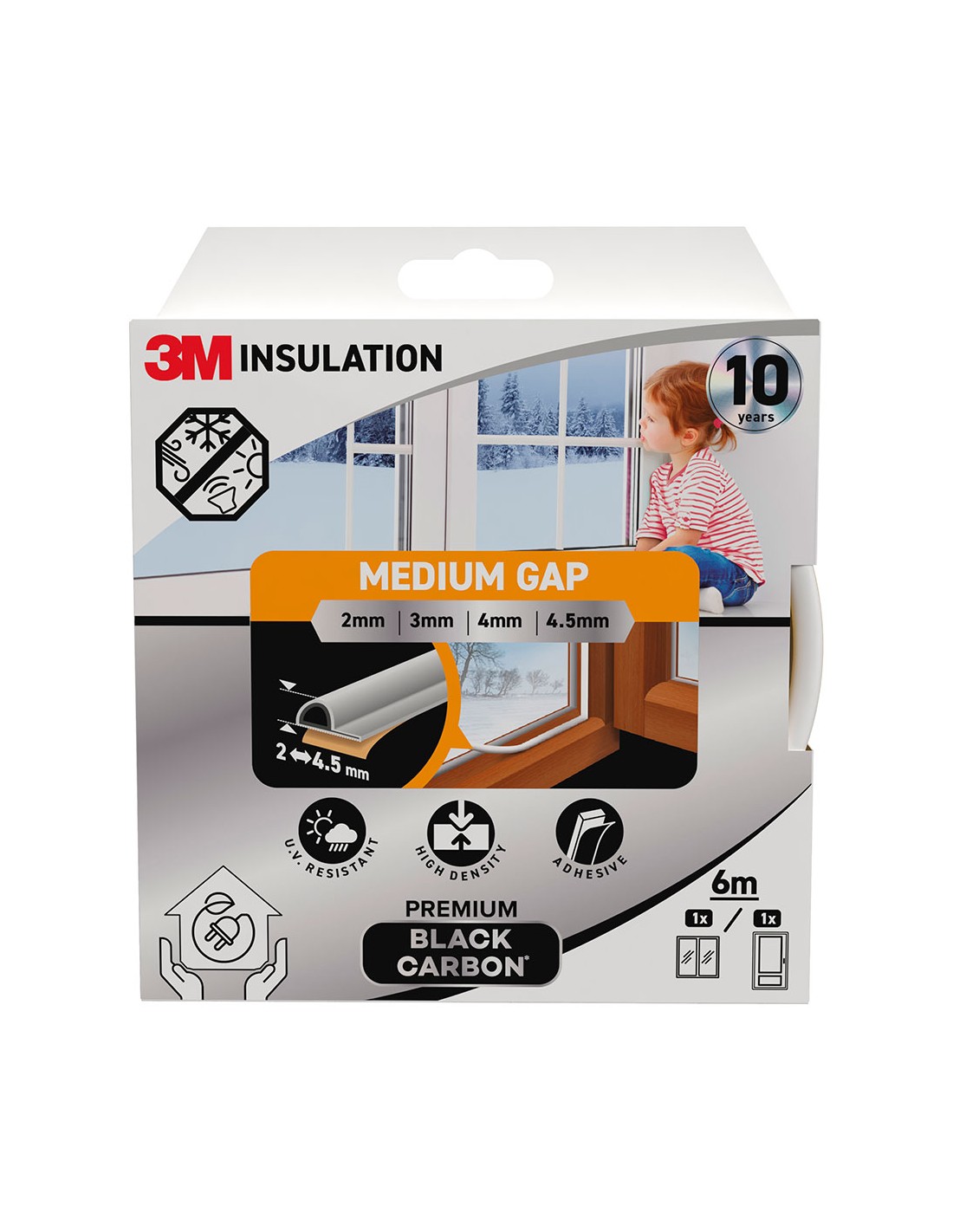 Burlete de aislamiento premium para huecos medianos de 2-4,5 mm, diseñado para todo tipo de puertas y ventanas, reforzado con polvo de carbono para mayor durabilidad, aisla eficazmente contra el frío, el calor, el polvo, el ruido y el viento blanco 6 m