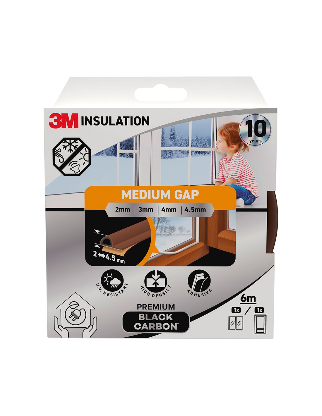 Burlete de aislamiento premium para huecos medianos de 2-4,5 mm, diseñado para todo tipo de puertas y ventanas, reforzado con polvo de carbono para mayor durabilidad, aisla eficazmente contra el frío, el calor, el polvo, el ruido y el viento marrón 6 m