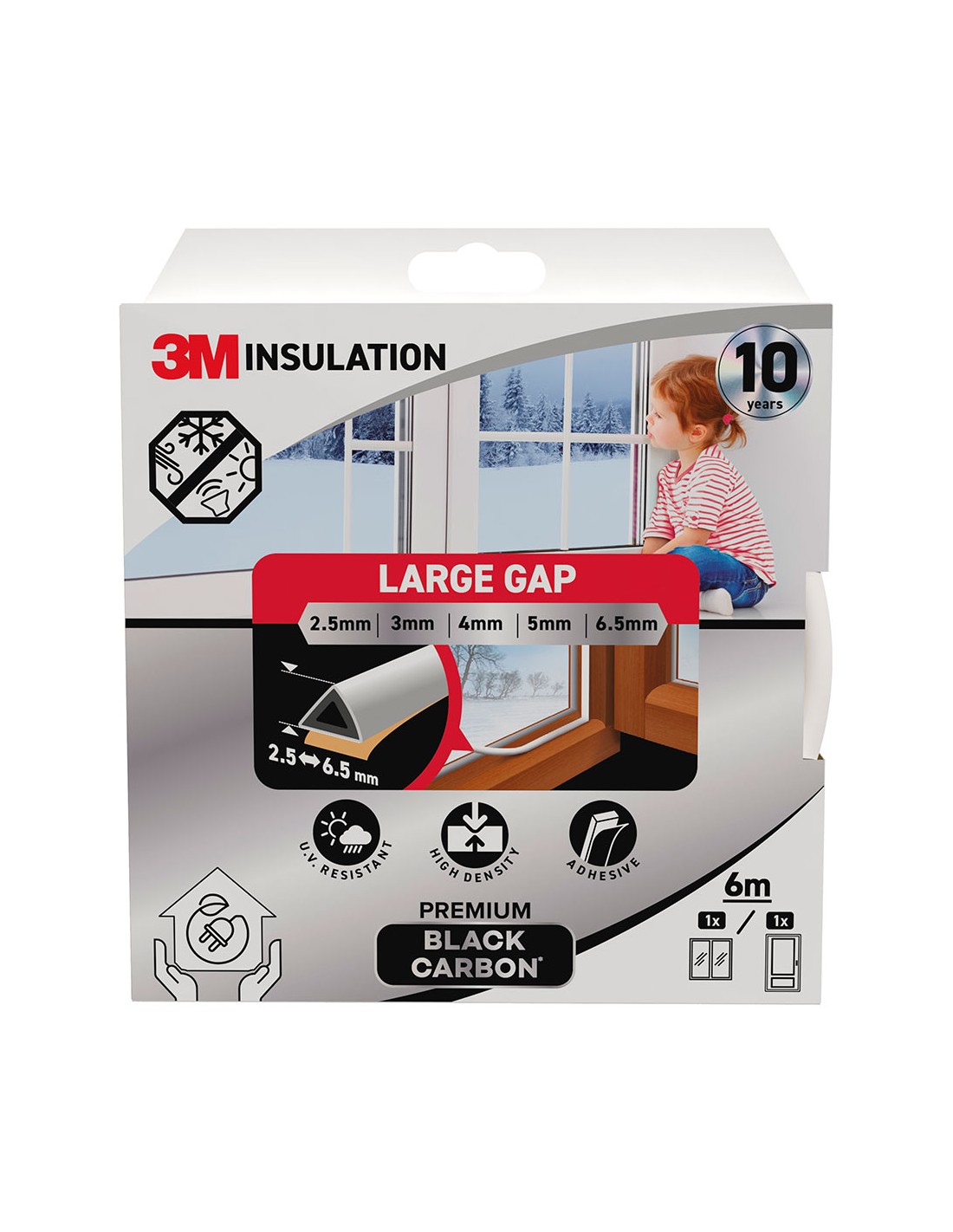 Burlete de aislamiento premium para huecos grandes de 2,5-6,5 mm, diseñado para todo tipo de puertas y ventanas, reforzado con polvo de carbono para mayor durabilidad, aisla eficazmente contra el frío, el calor, el polvo, el ruido y el viento blanco 6 m