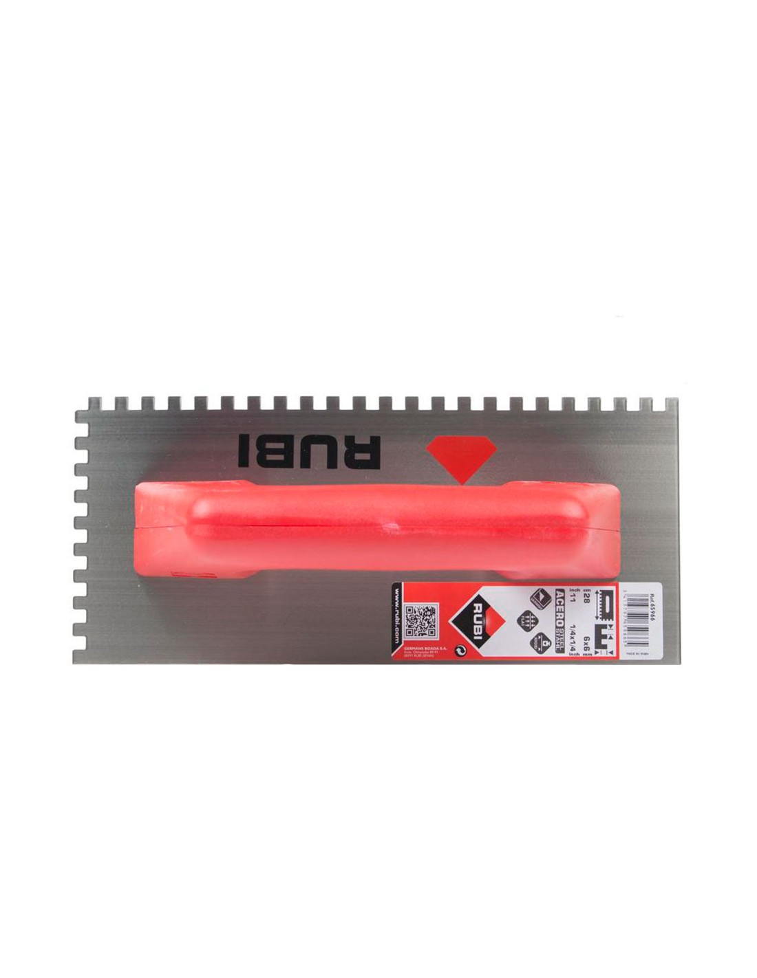 Peine acero 28cm (6x6) mango plástico cerrado 65966 rubi. llana dentada para aplicar morteros cola. dentado de 6x6cm. ideal para cerámica de formato pequeño. mango de plástico cerrado