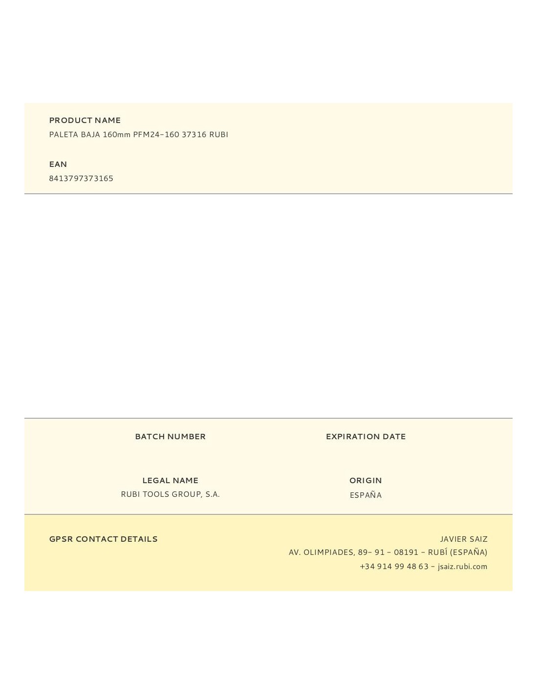 Paleta baja pfm24-160 37316 rubi. paletas fabricadas en acero de alta calidad y resistencia. reciben un tratamiento térmico específico que mejora su flexibilidad y reduce su desgaste.lo mismo con la espiga de la paleta, para incrementar su dureza y rigidez y conseguir la máxima ligereza y excelentes cualidades de resistencia y comodidad de uso. las fibras de la lámina han sido orientadas longitudinalmente durante el laminado. total regularidad de todas las partidas, una perfecta planitud y una gran resistencia y protección contra la corrosión de la lámina, y además, gracias a la utilización de la exclusiva técnica de fusión a temperatura de forja, ofrecen una garantía de por vida contra rotura en el punto de unión de la espiga del mango y la base de la lámina. la fijación entre mango y espiga de las paletas es sólida y no desmontable. paleta madrid. longitud de la lámina 160mm. mango madera