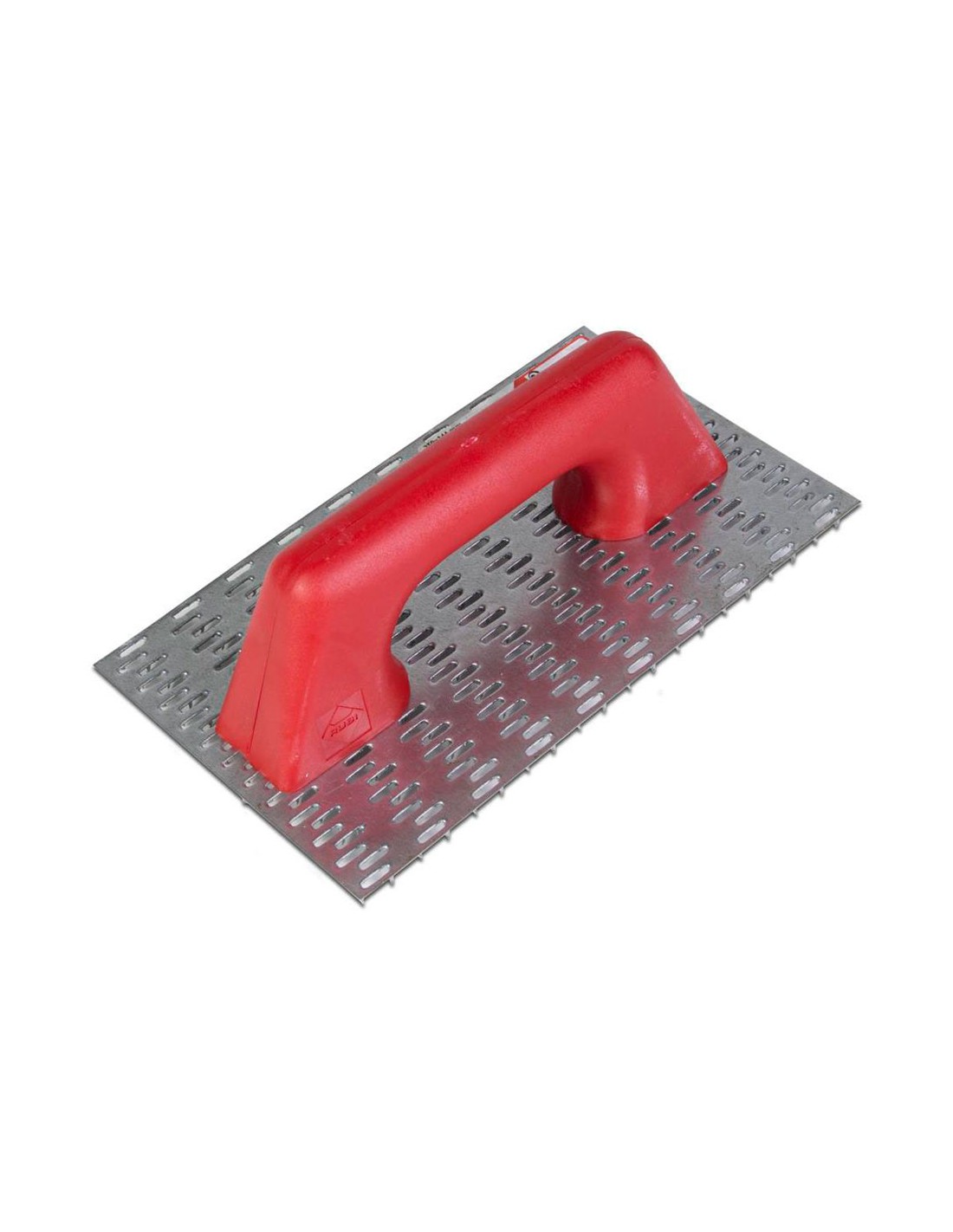 Rascador mango plástico 250x144mm (ancho/fondo). 65962 rubi. el rascador de mortero monocapa con mango de plástico tiene una lámina de acero galvanizado de 250x144mm de alta resistencia al desgaste.para garantizar una correcta fijación y resistencia, la unión entre la lámina y el mango de plástico se realiza mediante tornillos. esto, además, facilita la sustitución de la lámina una vez esta se ha desgastado. utilizaremos el rascador de mortero monocapa cuando el mortero monocapa esté parcialmente seco, realizando pequeños movimientos circulares. de este modo, conseguiremos regularizar el espesor dejando el mortero monocapa a la altura deseada, y además se disimularan los diferentes "paños" de trabajo realizados.