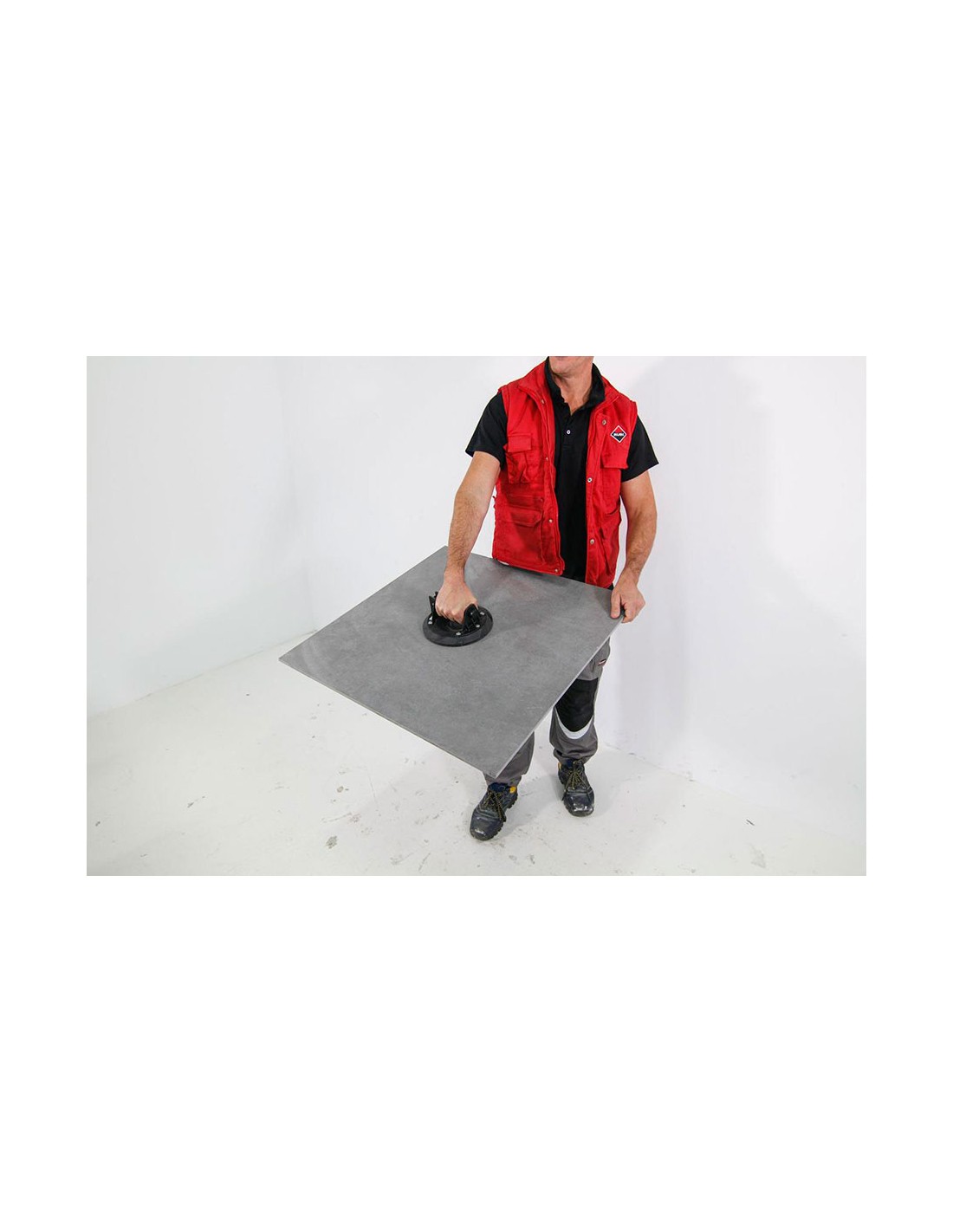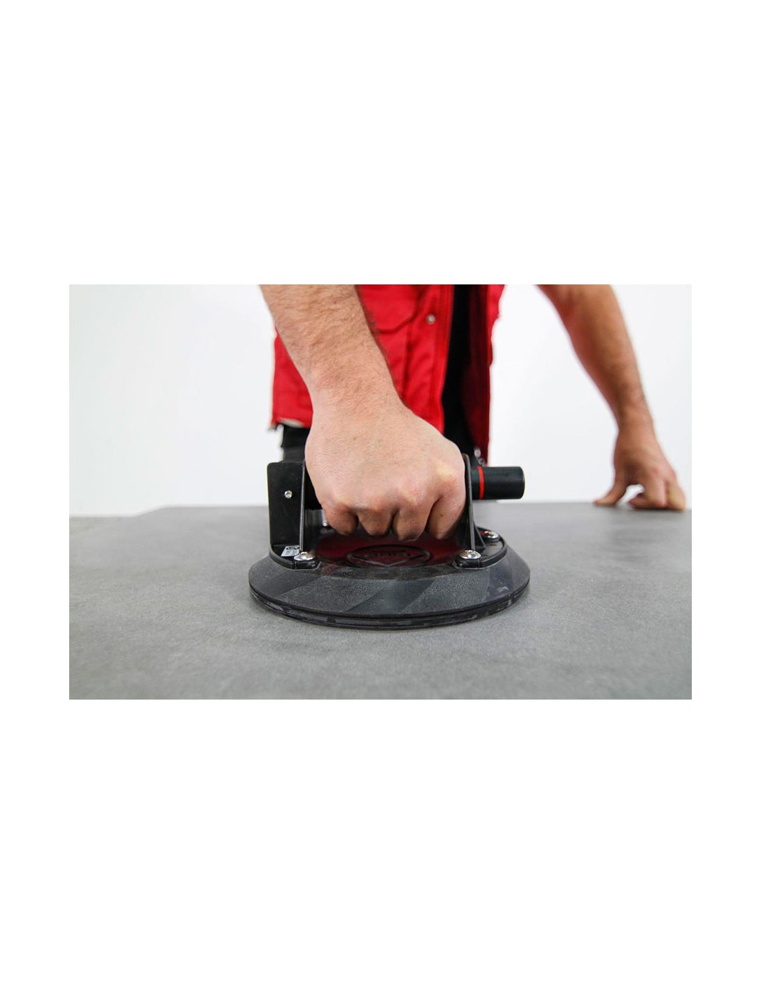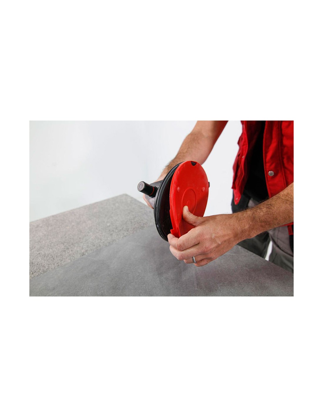 Ventosa con bomba de vacio ø200mm 18919 rubi. ideal para la carga y manipulación de materiales pesados sin importar el tipo de acabado superficial. se adapta tanto a superficies lisas como rugosas, así como las que presentan texturas variadas (estructuradas). el diámetro de 20cm de la ventosa con bomba de vacío, es perfecto para la manipulación de baldosas de gran formato o lámina cerámica. se activa facilmente con un sólo dedo y está equipada con una marca de seguridad que nos indica la pérdida de succión y nos recuerda la necesidad de bombear nuevamente para retener la carga de vacío en la ventosa. dispone de una válvula de liberación de presión manual, para poder retirar, facilmente, la ventosa del material manipulado. se sirve en un práctico estuche-maleta, para protegerla y transportarla con la máxima seguridad.