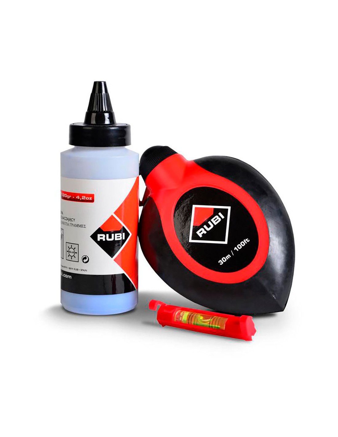 Marcador de líneas master-n 75925 rubi. permiten realizar líneas perfectamente rectas de varios metros de longitud, en cualquier tipo de soporte, sin preocuparnos de su textura o acabado, en cuestión de segundos. formado por un recipiente fabricado en plástico bimaterial (rubiflex) de una gran resistencia a los impactos y excelente grip. el carrete del marcador tiene 30m de cuerda, un sistema de recogida rápida y un bloqueo para evitar perder cuerda cuando tensamos para marcar. en el extremo de la cuerda encontramos una pieza metálica de gran resistencia que nos permite enganchar la cuerda a un borde o clavarla. de esta forma, una sola persona puede realizar las marcas.esta misma pieza metálica hace de tope y evita que la cuerda entre por completo en el carrete. con una botella de 120g. de polvo trazador o "azulete" para recargar el depósito del marcador.