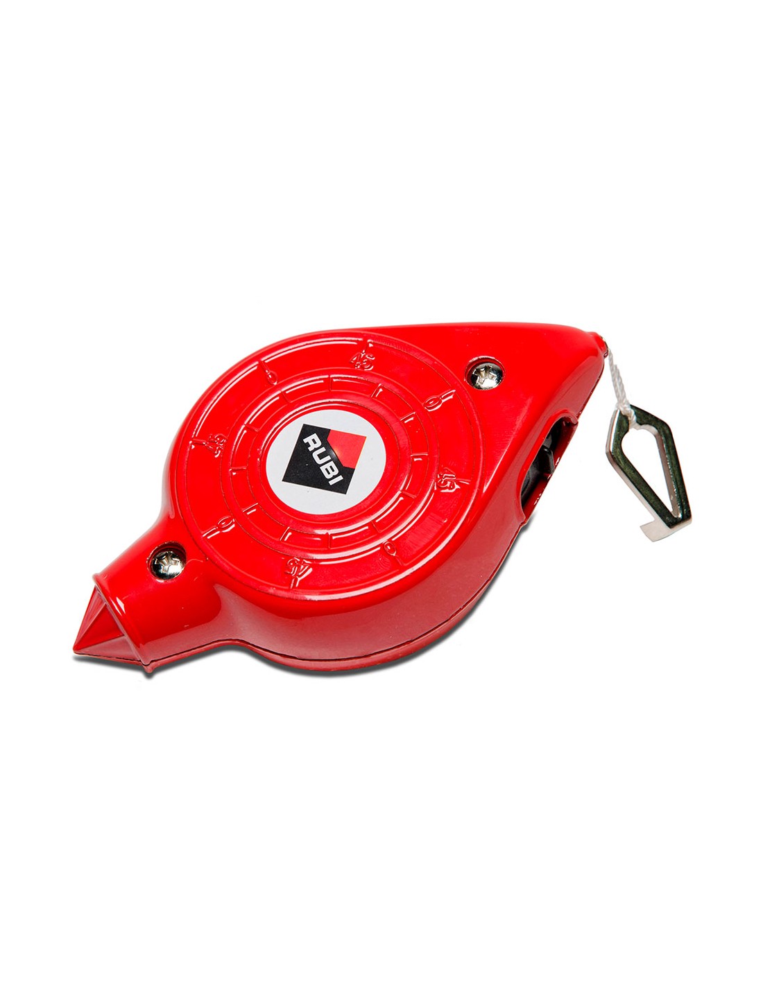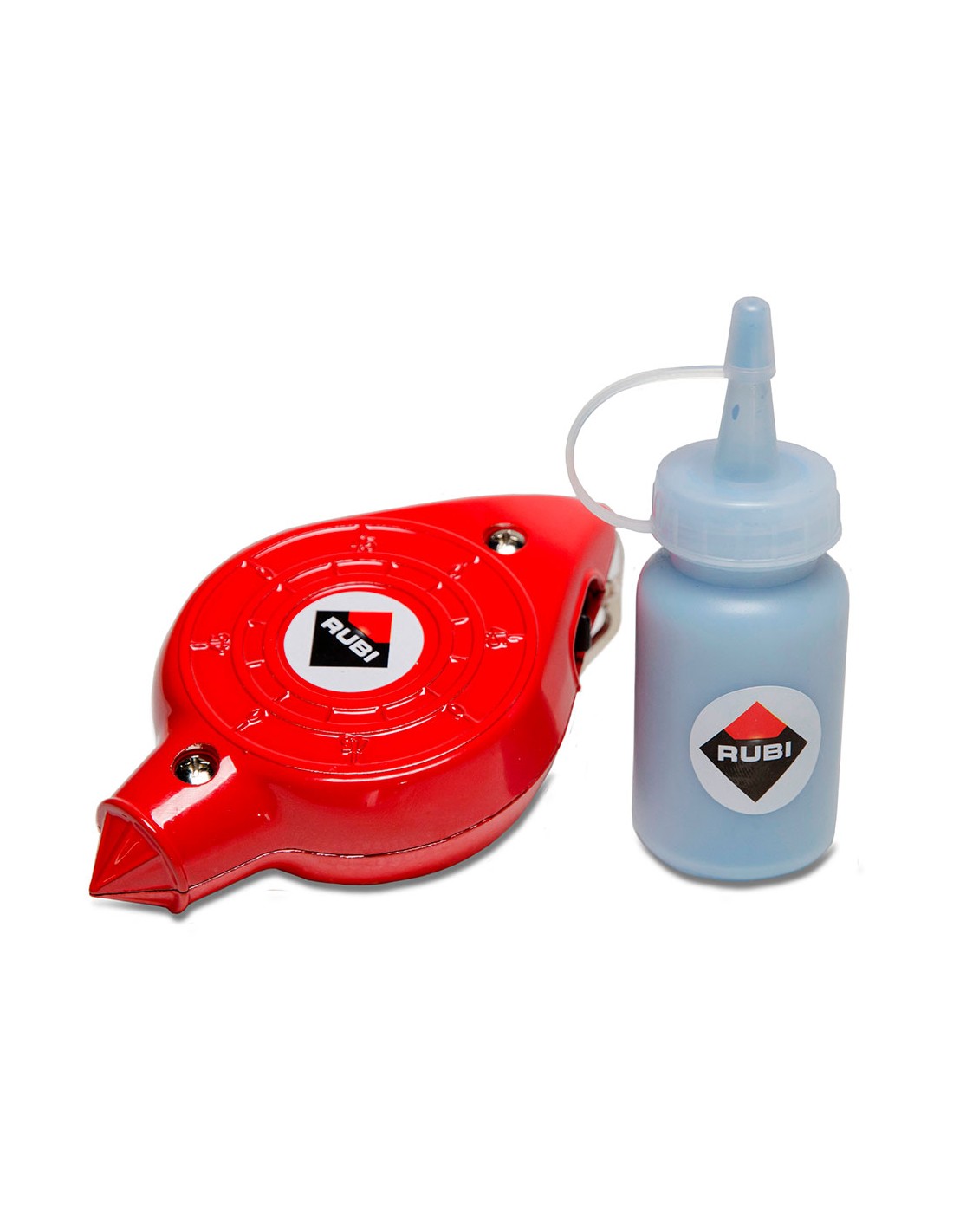 Marcador de líneas 70926 rubi. nos permite realizar líneas perfectamente rectas de varios metros de longitud, en cualquier tipo de soporte, sin preocuparnos de su textura o acabado, en cuestión de segundos. está formado por un recipiente fabricado en aluminio de una excelente resistencia a los impactos. el carrete cuenta con 15m de cuerda, un sistema de recogida rápida y un bloqueo para evitar perder cuerda cuando tensamos para marcar. incluye una botella de 50g. de polvo trazador o "azulete" para recargar el depósito del marcador.