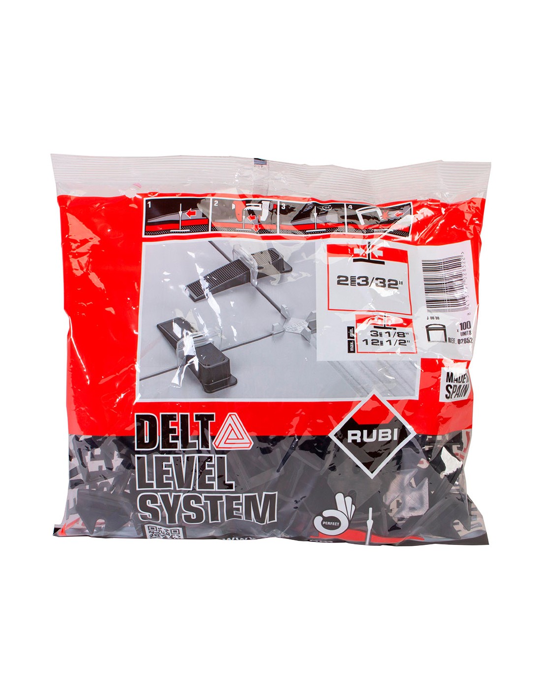 Brida 3-12mm 2mm delta level system (b-100 unid.) evita la creación de cejas de colocación durante la instalación de baldosas cerámicas, tanto en suelos como en paredes. evita el movimiento de las baldosas durante el fraguado del adhesivo y, durante la instalación, se reduce el número de correcciones en la posición de la propia baldosa cerámica. recomendado para formatos de 30x30cm o mayores y espesores variados de hasta 12, 15 o 20mm, dependiendo del modelo de brida que se utilice.