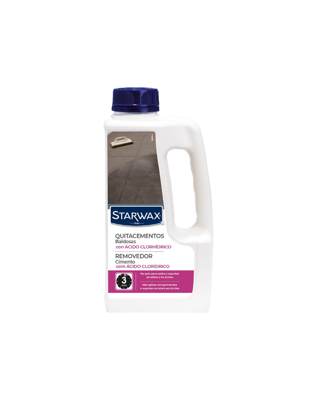 Quitacementos baldosas 1 l. con ácido clorhídrico no es apto para suelos y soportes sensibles a los ácidos. ideal tras la colocación del embaldosado: elimina veladuras de cemento, residuos de yeso, incrustaciones calcáreas, óxido. actúa igualmente sobre salitre y eflorescencias.
