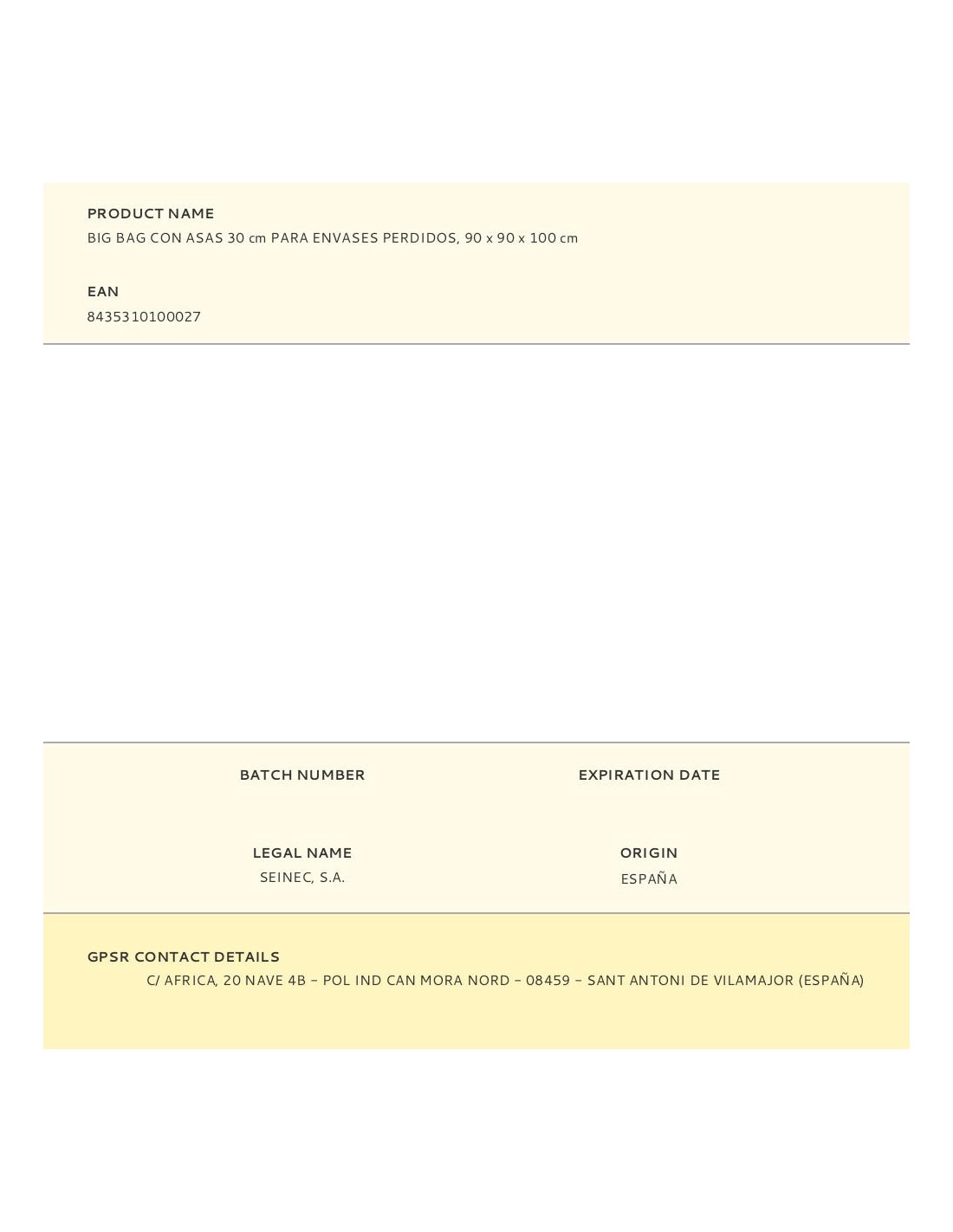 Big bag con asas 30 cm para envases perdidos, 90 x 90 x 100 cm