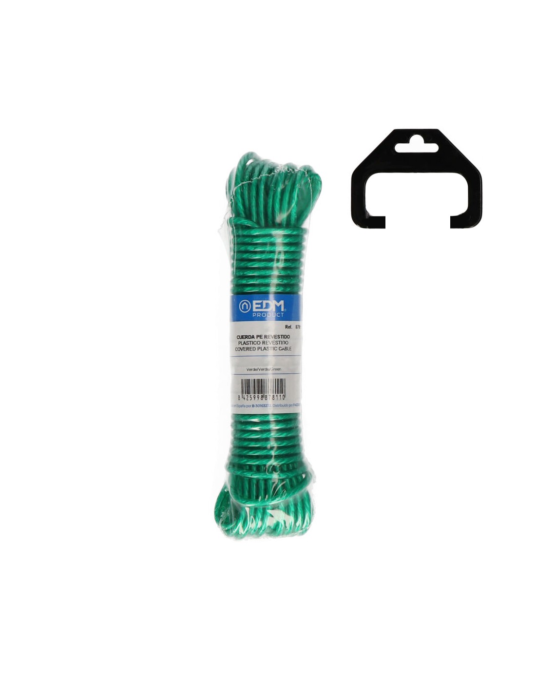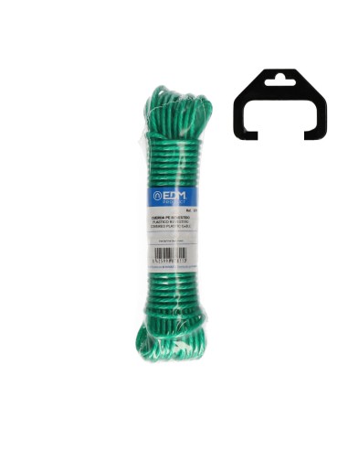 Cuerda plastico revestido pvc tendedero 10 m verde. composicion: monofilamento de polietileno torcido 3 cabos. recubierto de pvc. caracteristicas: suave, flexible, buena resistencia. poca elasticidad. facil limpieza. utilidades: tendederos exteriores e interiores, camping, náutica, cercados, agricultura, industria en general, bricolaje