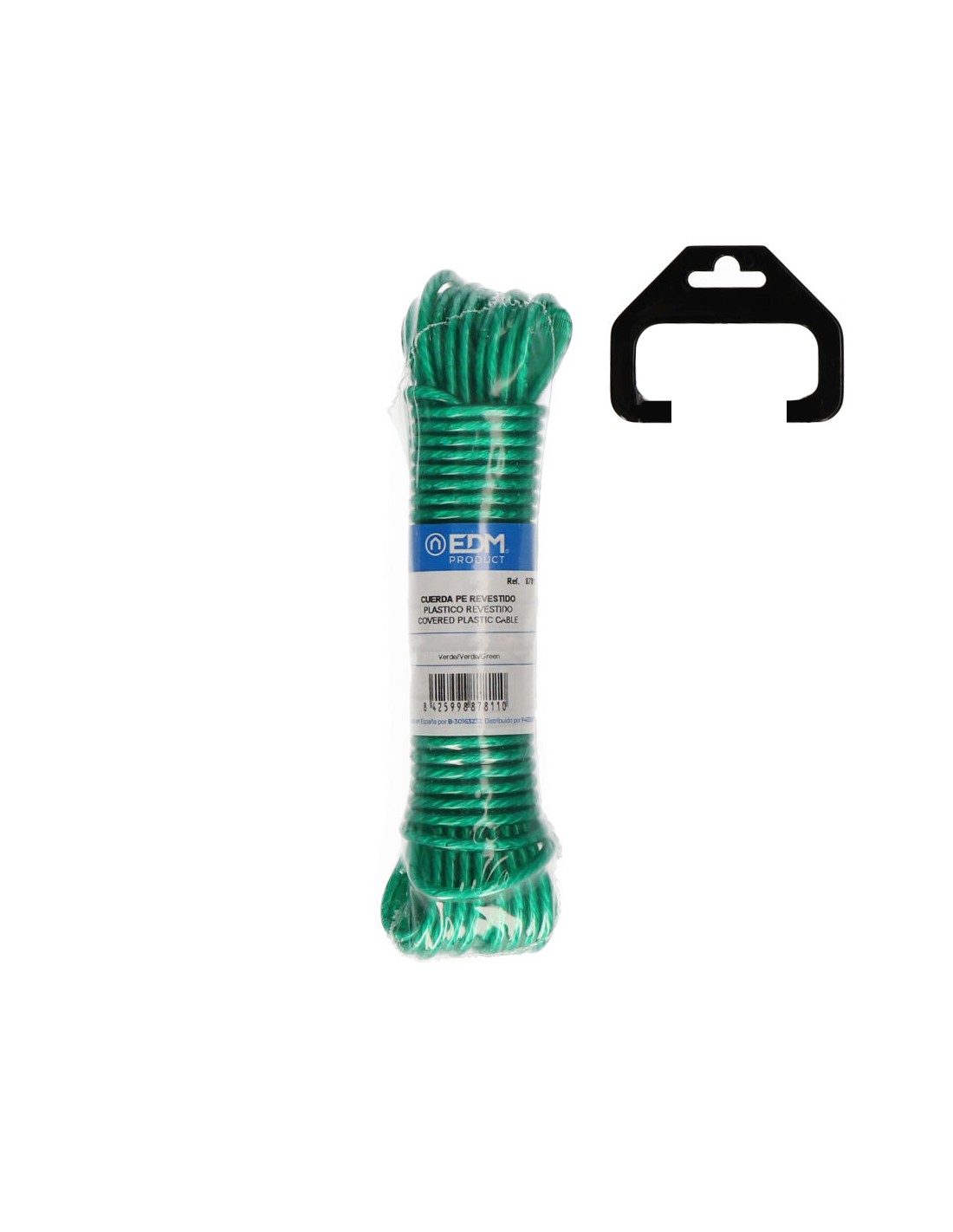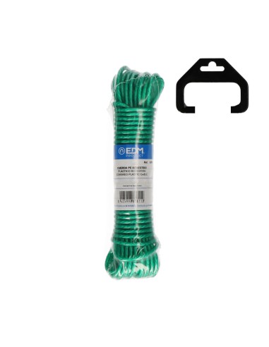 Cuerda plastico revestido pvc tendedero 25 m verde. composicion: monofilamento de polietileno torcido 3 cabos. recubierto de pvc. caracteristicas: suave, flexible, buena resistencia. poca elasticidad. facil limpieza. utilidades: tendederos exteriores e interiores, camping, náutica, cercados, agricultura, industria en general, bricolaje