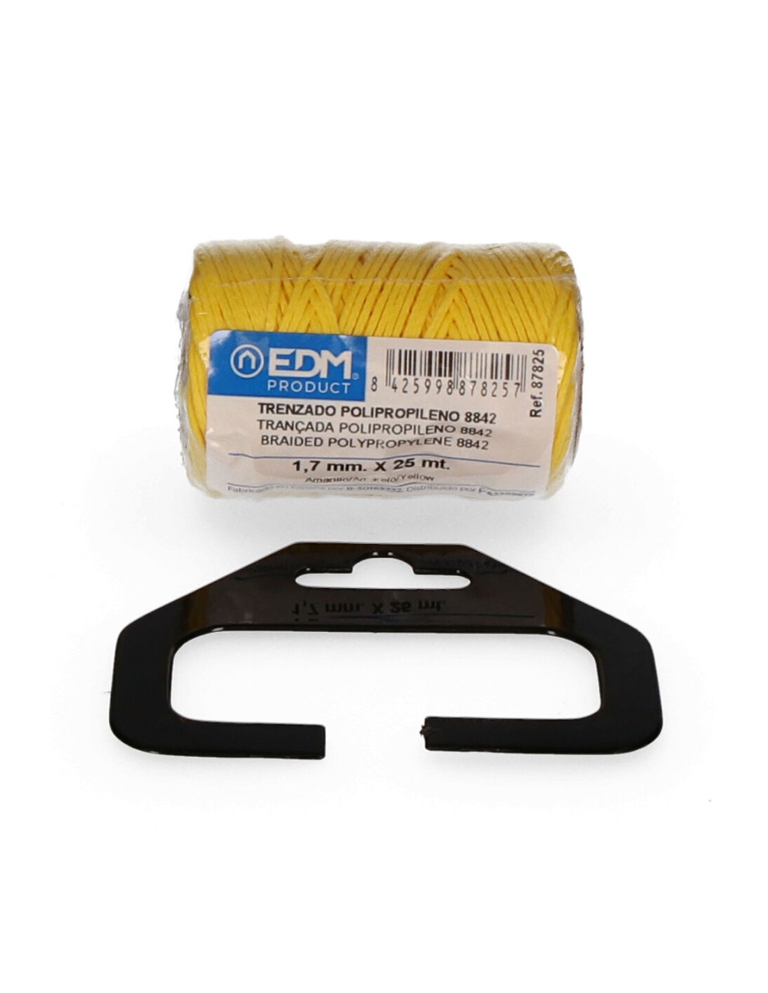 Cordón trenzada polipropileno 8842 25m amarillo ø1,7mm composicion: trenzado polipropileno alta tenacidad con proteccion solar. caracteristicas: suave, flexible, buena resistencia, posee flotabilidad. absorcion al agua 0%. utilidades: albañileria, agricultura, paqueteria. manualidades, bricolaje