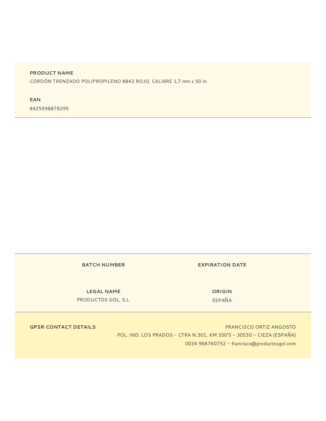 Cordón trenzado polipropileno 8842 amarillo, calibre 1,7 mm x 25 m