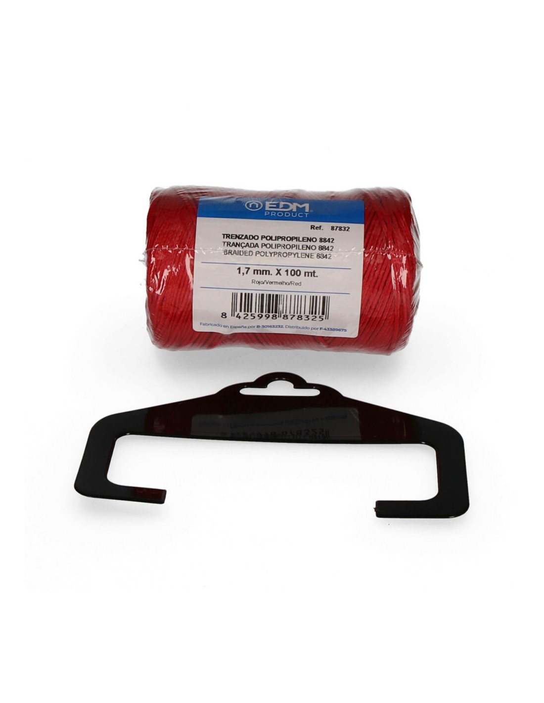 Cordón trenzada polipropileno 8842 100m rojo ø1,7mm composicion: trenzado polipropileno alta tenacidad con proteccion solar. caracteristicas: suave, flexible, buena resistencia, posee flotabilidad. absorcion al agua 0%. utilidades: albañileria, agricultura, paqueteria. manualidades, bricolaje