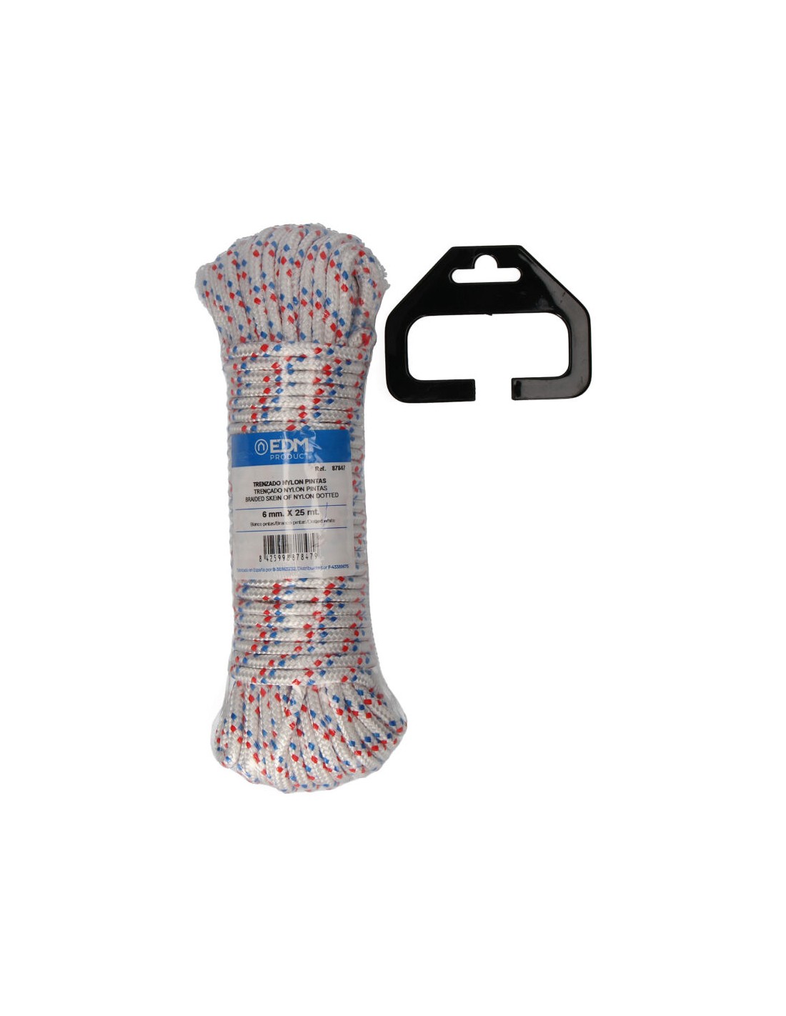Cuerda trenzada blanca con pintas nylon, calibre 6 mm x 25 m