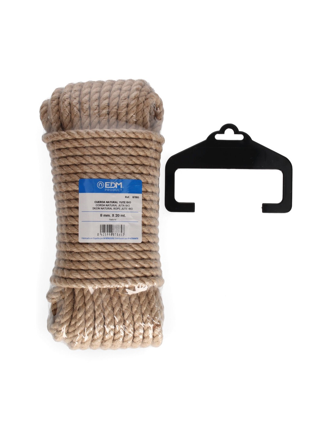 Cuerda natural yute biodegradable 3 cabos, calibre 8 mm x 20 m
