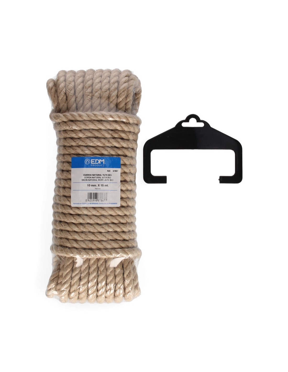 Cuerda natural yute biodegradable 3 cabos, calibre 10 mm x 15 m