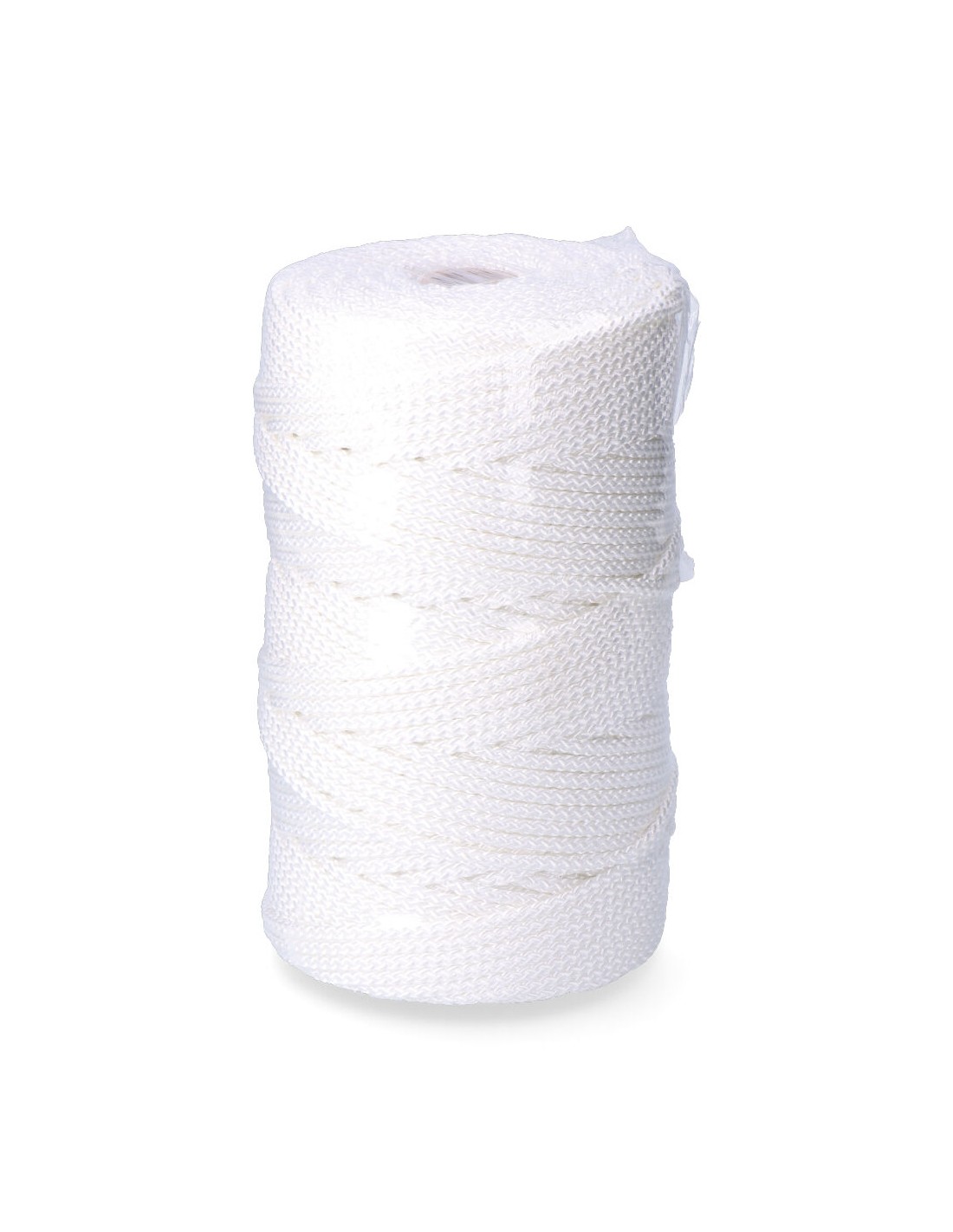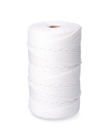 Cuerda trenzada de poliéster de alta tenacidad granete, con tratamiento uv. producto flexible, suave, resistente a la abrasión y alta resistencia al contacto con sustancias químicas. material sumergible y baja absorción al agua. cordón ideal para toldos, persianas, tenedederos, invernaderos, ganadería, efectos navales, bricolaje. resistencia a la rotura: 400 kg, medida bobina ø15,5 x 25,5 cm, medida agujero central ø2,5 cm