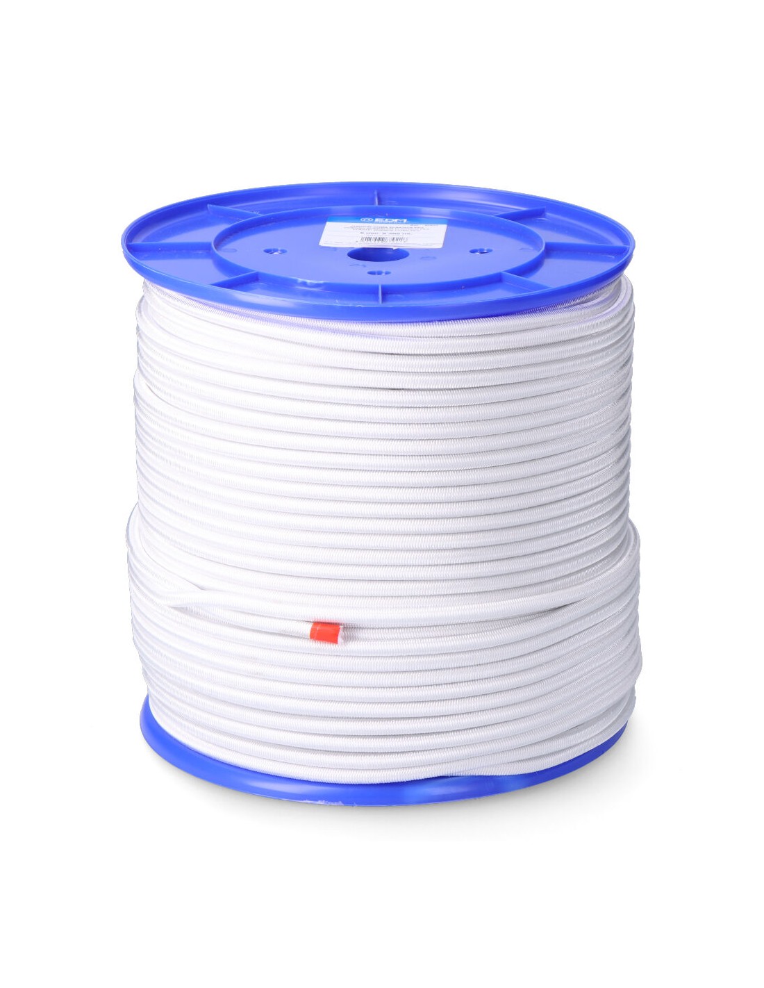 Cuerda elástica trenzada exterior de poliéster de alta tenacidad con torsión y alma de látex de alto módulo, con protección uv. producto flexible, alta elasticidad y muy buena recuperación. suave al tacto y resistente. cordón ideal para toldos, lonas, amarre, tendederos, invernaderos, ganadería, efectos navales, bricolaje. resistencia a la rotura: 1.280 kg, medida bobina ø25 x 21 cm, medida agujero central ø3 cm
