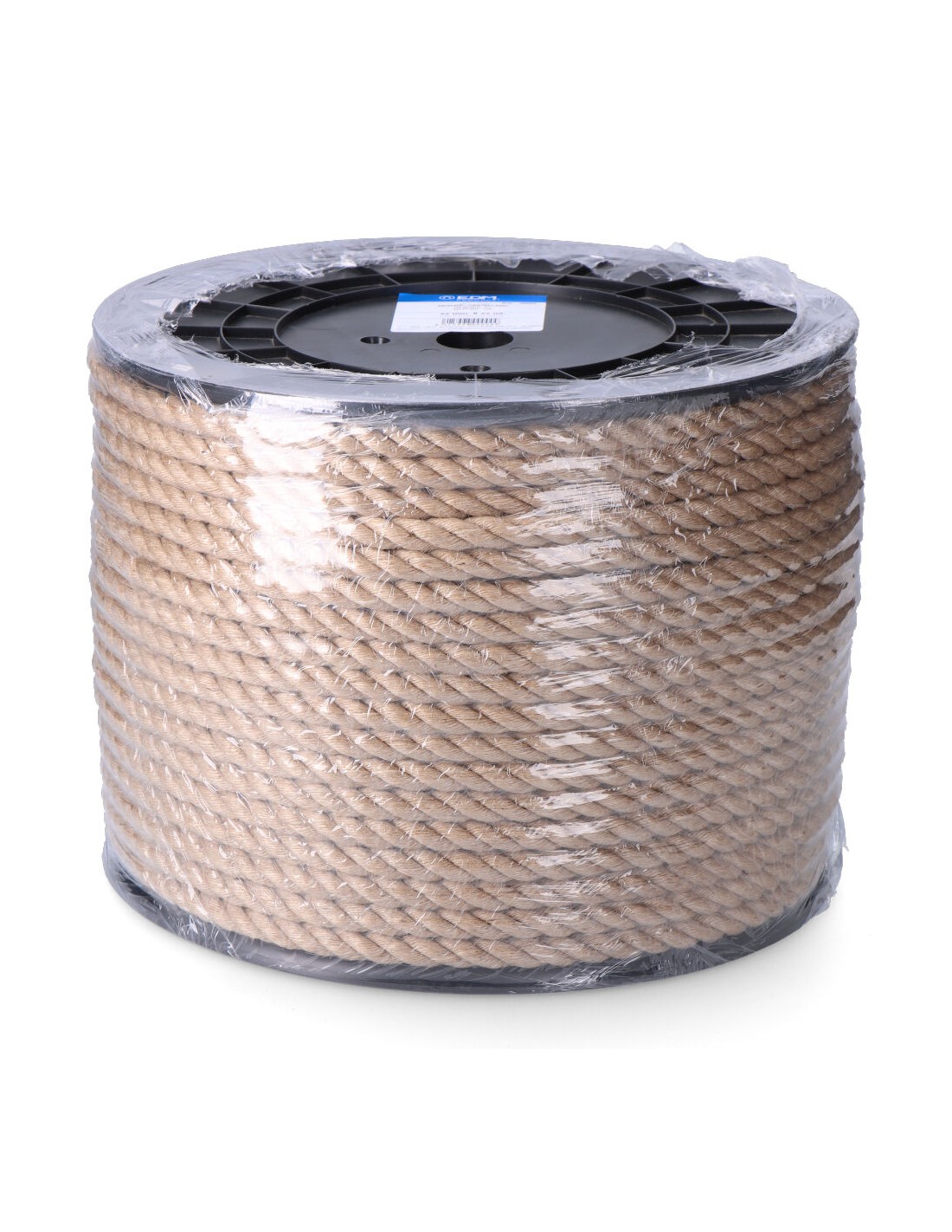 Cuerda natural yute 3 cordones en s. producto 100% ecologico y biodegradable. producto flexible, suave y buen agarre. resistencia en el nudo. cordón ideal para decoración, manualidades, agricultura, ganadería, construcción, pesca, bricolaje. resistencia de rotura: 1000 kg, medida bobina ø40 x 24 cm, medida agujero central ø2,5 cm