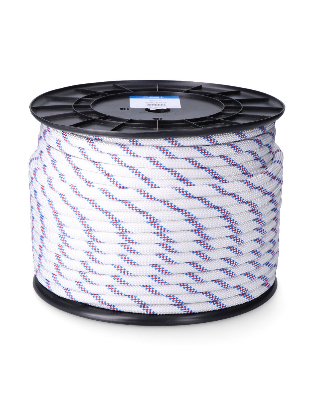 Cuerda tipo driza camisa trenzada poliester alta tenacidad con alma de poliéster. producto flexible, sumergible y buen agarre. absorbe poca agua y alta resistencia al contacto con sustancias químicas. cordón ideal para toldos, construcción, efectos navales, agricultura, ganadería, camping, bricolaje. resistencia a la rotura: 1.500 kg, medida bobina ø40 x 24 cm, medida agujero central ø3 cm