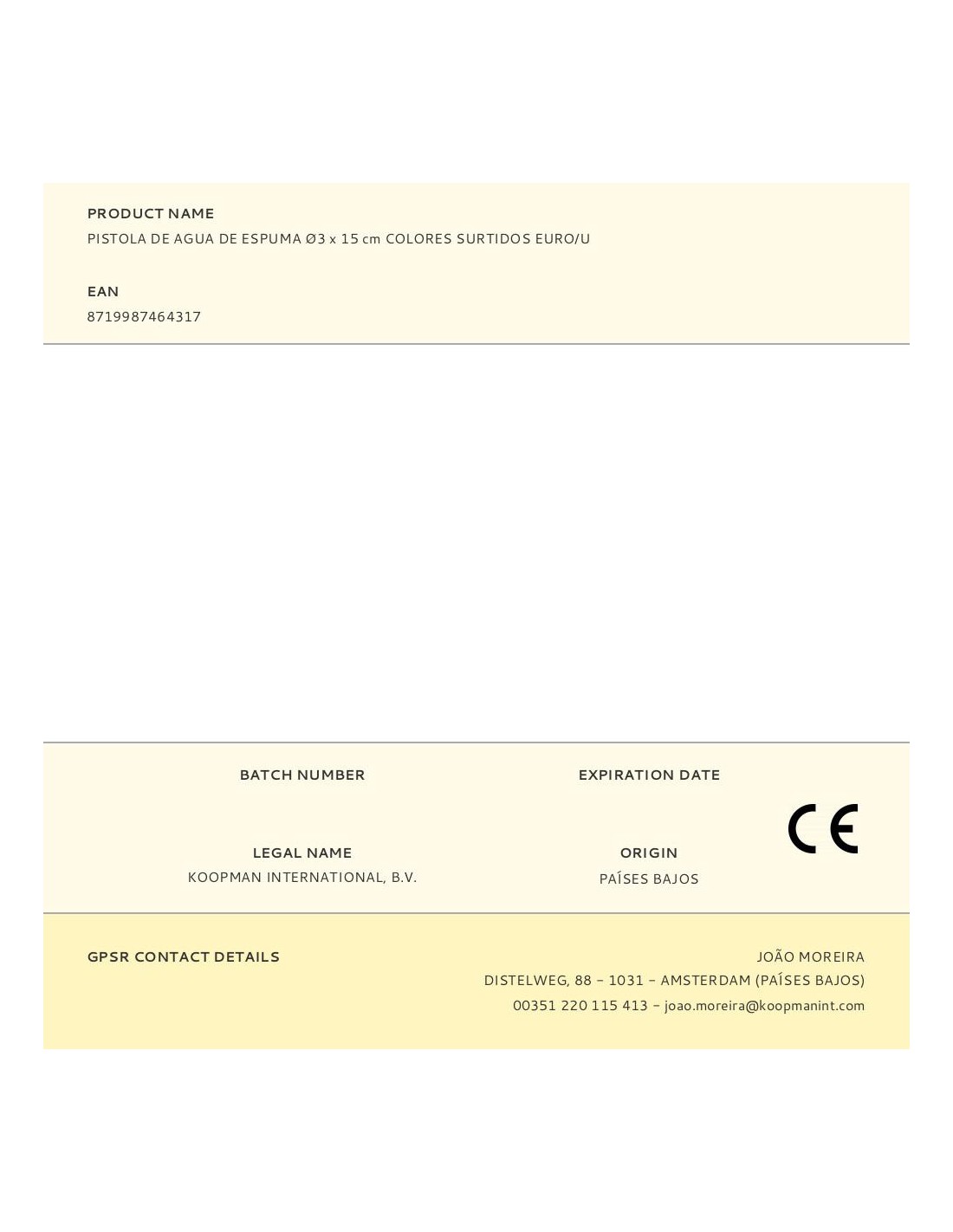 Pistola de agua de espuma ø3 x 15 cm colores surtidos. euro/u