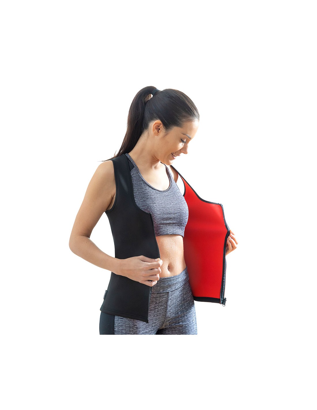 Chaleco deportivo con efecto sauna para mujer veheat xl v0103431 innovagoods. este chaleco para mujer está especialmente diseñado para potenciar al máximo los resultados del ejercicio físico, ya que aumenta la temperatura corporal y la sudoración, favoreciendo la eliminación de grasa y toxinas. ¡este chaleco adelgazante es una forma eficaz y sencilla de mejorar la figura!